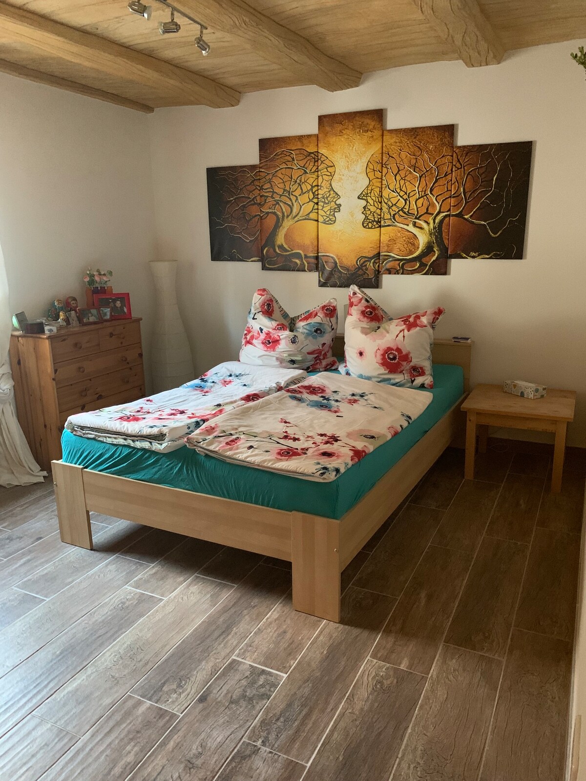 Ettenheim Im Osterbach, sehr Ruhig gelegen 1 Schlafzimmer mit einem Boxspringbett 1,8 x 2,0 ,2 Stühle und Kleiderschrank. 1 Schlaf/ Wohnzimmer mit einem Boxspringbett 1,8 x 2,0 sowie Schlaf-Couch 1,4 x 2,0, Wohnzimmer Tisch, Schreibtisch und 43 Zoll TV 1 vollausgestattete Küche mit Spülmaschine, Microwelle , Esstisch u. 6 Tresen Hocker Bad mit Badewanne und Glasduschabtrennung Flur mit Garderobe u. großem Spiegel Ladestation für E-Auto auf Anfrage Ladekabel Typ 2