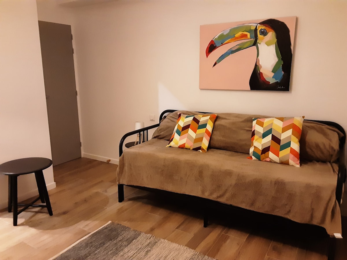 Wohnung mit kleinem Garten, 10 Minuten von Rouen Zentrum mit dem Auto oder Bus. Terrasse mit Grill, die Möglichkeit, ein Auto im Garten zu parken. Ein Schlafzimmer mit 160 cm Bett, Bad mit ebenerdiger Dusche und Waschmaschine. Ausgestattete Küche mit Mikrowelle, Backofen, Senseo-Kaffeemaschine, Teekanne, Geschirrspüler. WLAN ist kostenlos vorhanden, TV + Netflix, Kinderbett vorhanden. Öffentliche Verkehrsmittel 2 Minuten zu Fuß Linie 15 direkt nach Rouen. Mindestens 2 Nächte