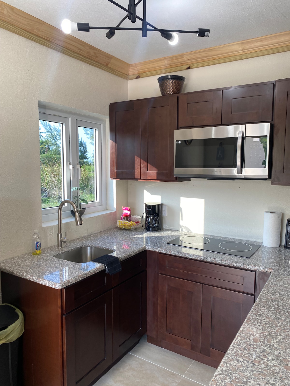 Das Haus besteht aus 2 Einheiten 1 im Obergeschoss und 1 im Erdgeschoss, beide bestehen aus 1 Schlafzimmer, 1 Badezimmer, Wohnzimmer, Esszimmer und Küche. Genieße Sonnenaufgänge und Sonnenuntergänge und lausche den Wellen vom Balkon an einem privaten Sandstrand, der mehrere Meilen lang ist. Wir sind 5 Minuten vom Flughafen entfernt. Diese Einheit befindet sich im Obergeschoss.