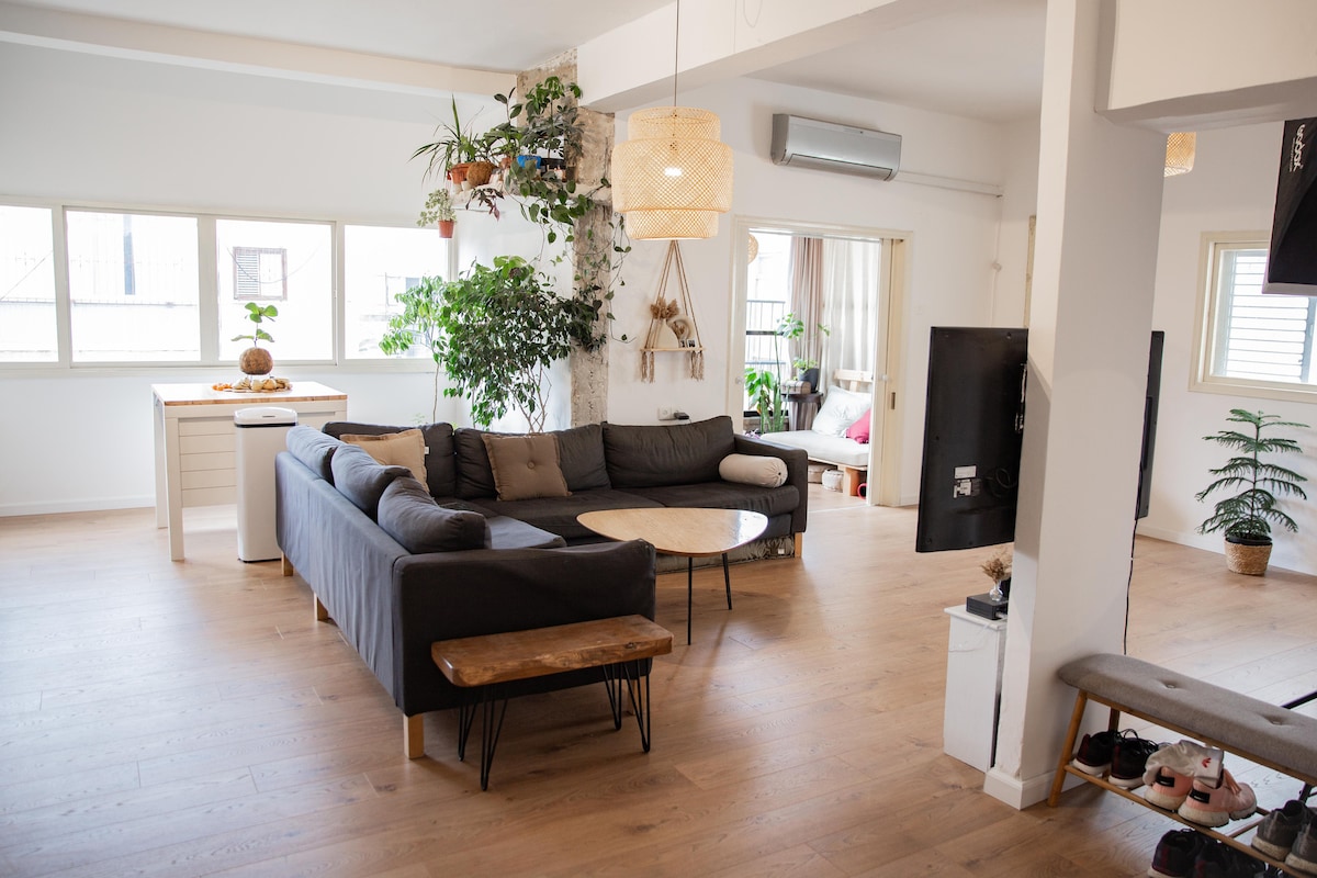 Übernachte an einem der besten zentralen Standorte von Tel Aviv, nur wenige Schritte vom beliebten Rothschild-Boulevard entfernt. Von dieser schönen, modernen und geräumigen Wohnung aus sind viele der besten Cafés, Restaurants und Ausgehmöglichkeiten der Stadt zu Fuß erreichbar. Der Strand liegt etwa 10 Gehminuten entfernt. Herzlich willkommen! Bitte beachten: Direkt in der Wohnung befindet sich ein Mamad (Luftschutzbunker), der einen geschützten Raum innerhalb der Wohnung bietet.
