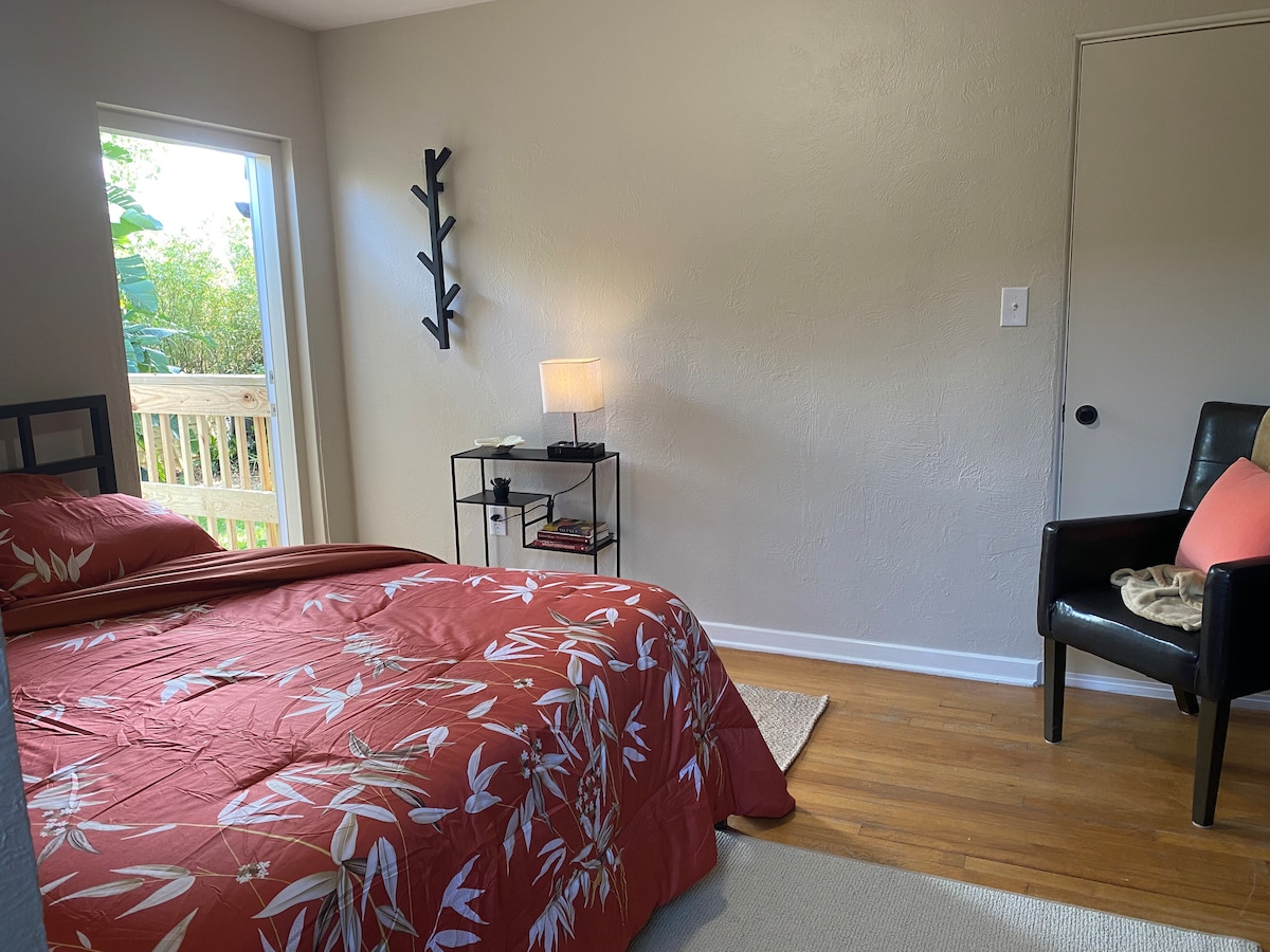 Dieser entspannende Raum mit 1 Bett und 1 Bad in Downtown Orlando verfügt über einen üppigen, eingezäunten privaten Hof, einen Whirlpool und eine voll ausgestattete Küche. Wir sind stolz auf Komfort, Wellness und zarter Liebe zum Detail, um die Magie eines trendigen Raums im Herzen von Orlando zu erleben. Genieße brandneue Umbau, Möbel und Geräte. Dies ist die hintere Einheit einer Unterkunft mit 2 Wohneinheiten. Dazu gehören: ✅50-Zoll-Fernseher ✅Luxusmatratze ✅Glasfaser-WLAN ✅Kaffee & Tee mit entkoffeiniertem Kaffee ✅Disney Plus, Hulu, Max, Netflix ✅ Kostenloser Parkplatz