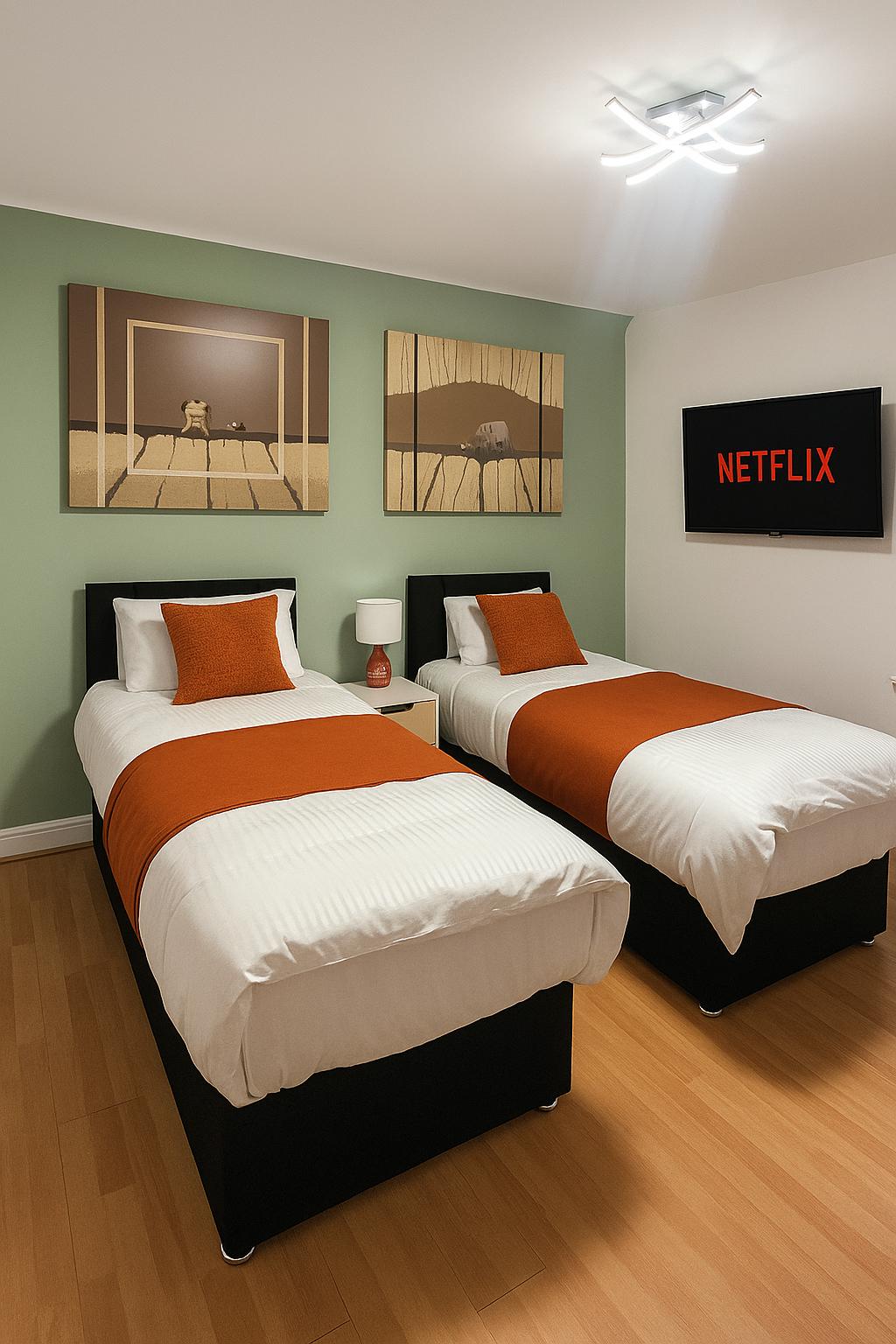 Modern 2-bedroom, 2-bath apartment in Didsbury – perfect for up to 4 guests. 🛏 Sleeps 4 | Full kitchen & dining area 🚗 FREE street parking + fast free Wi-Fi 🚋 Excellent tram & bus links to City Centre (10minute drive) 🏥 Near Christie Hospital (walking distance 5minutes), Manchester Airport & Co-op Live Arena 🍽 Walk to Wilmslow Rd cafes, bars & nightlife 🐶Pet Friendly 💲Long stay Discounts for Contractors and Relocators. Contact now 📞