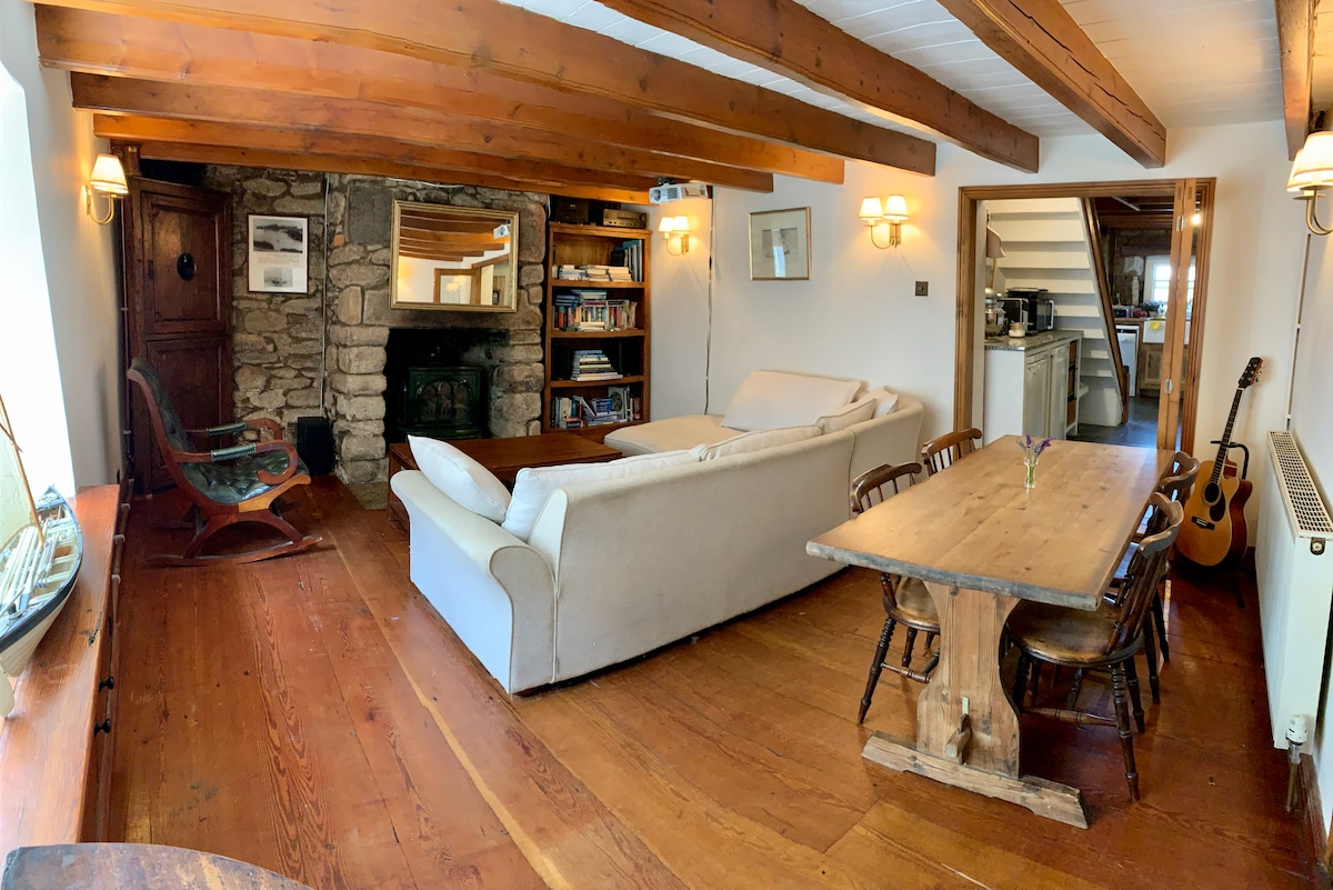 Echtes Cornish Cottage; Feuer, Landschaft und Ruhe