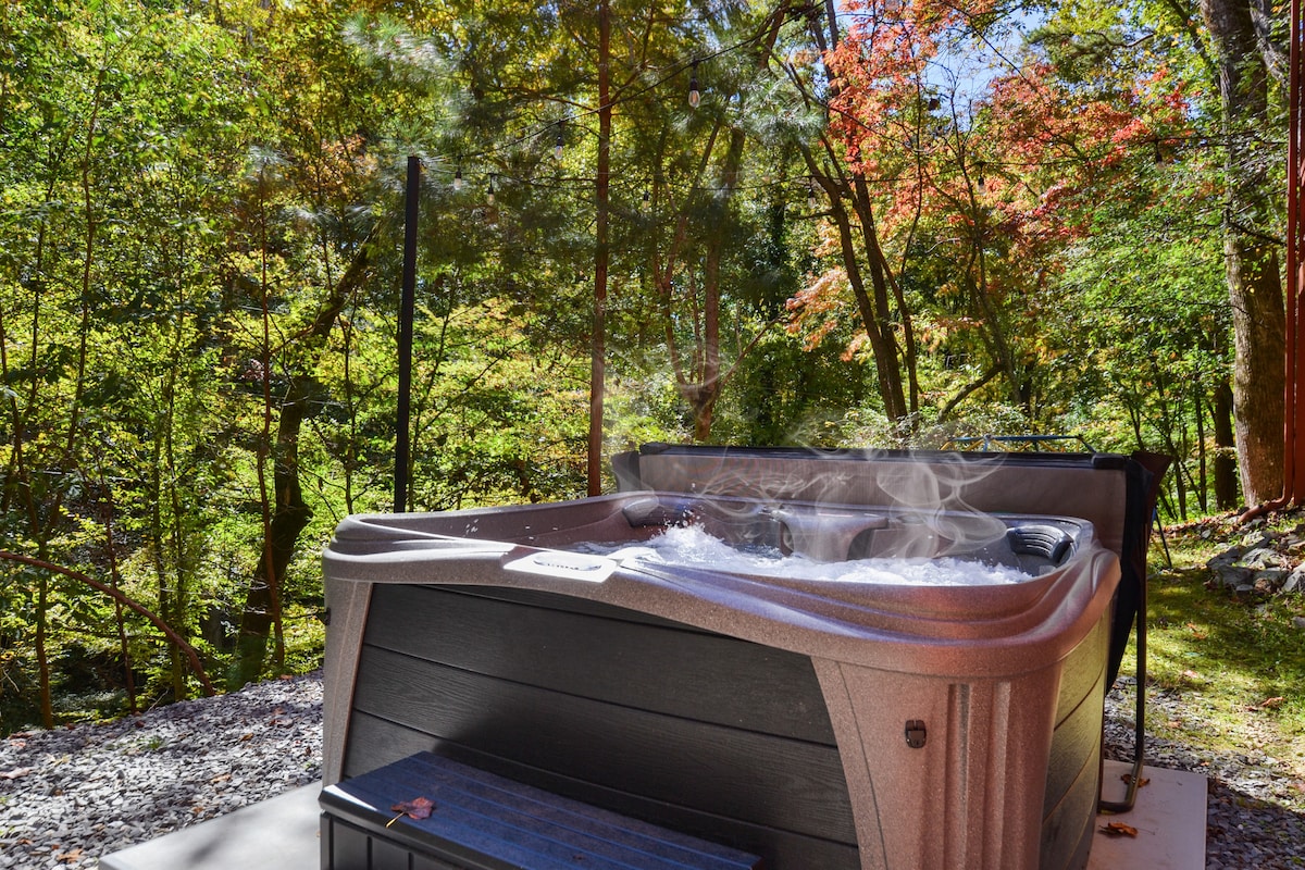 Gemütliche Boho-Blockhütte mit Whirlpool, Resort-Ausstattung