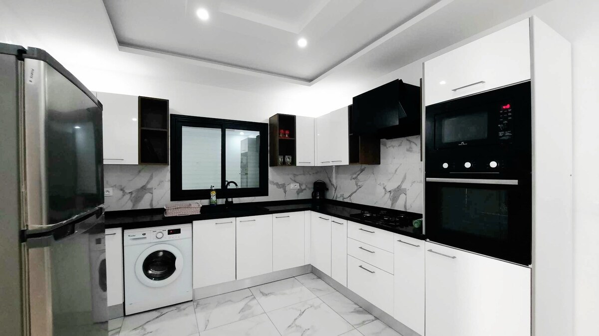 Willkommen in unserer Villa mit Pool in Djerba! Ideal für Familien, bietet Ihnen unser Anwesen Ruhe und Privatsphäre, nur 5 Autominuten vom Strand und 5 Gehminuten vom großen Casino entfernt. Genießen Sie einen erholsamen Aufenthalt mit geräumigen Zimmern, einer voll ausgestatteten Küche und einem privaten Pool ohne Gegenüber . Die Sandstrände von Djerba erwarten Sie für sonnige Tage, buchen Sie jetzt für einen außergewöhnlichen Familienurlaub in Djerba!