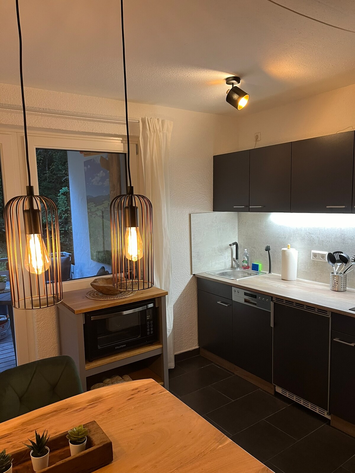 Auf 1000 Meter Höhe begrüßen wir dich mit einer atemberaubenden Sicht auf Schonach und den Schwarzwald. Entspanne in einem 2023 komplett renovierten Apartment mit topmoderner Ausstattung und viel Liebe zum Detail. Ob echter Baum im Wohnzimmer, Blumendecke über dem Bett, Fachwerkwände, Regendusche im Wald oder echtes Steinwaschbecken: Durch viele, hochwertige Details kommen Designliebhaber nicht zu kurz. Direkt am Waldrand gelegen ist der Fabelwald perfekt für Naturliebhaber.