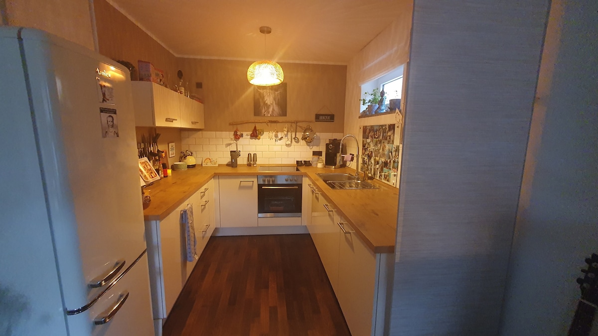 Entspannung pur in einer Umgebung mit 100% 5*-Bewertungen für Sauberkeit. Gründliche Reinigung und Desinfektion vor jedem Check-in. Sehr gemütliche 4-Zimmer-Wohnung mit Balkon und Garten, mitten im Grünen und doch stadtnah gelegen. Die renovierte 110m² Wohnung ist sehr gut ausgestattet: Wohnzimmer mit Kachelofen plus 3 Schlafzimmer. Ideal als Ferienwohnung für Familien, für Messebesucher, Geschäftsleute, Firmenmitarbeiter oder Reisegruppen. Privater Parkplatz ist direkt vor dem Haus vorhanden.