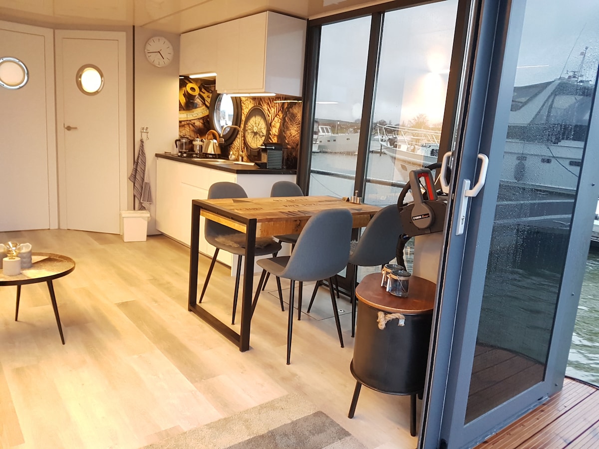 Im Dezember bis Ende Februar liegt das Hausboot, wie auf dem ersten beiden Bildern zu sehen ist im Hafenbecken. Einzigartige Unterkunft an der Mosel. Das Hausboot liegt am Außenkai, mit einem direkten Blick aufs Wasser. Von der Sonne verwöhnt den ganzen Tag. Es verfügt über ein Schlafzimmer mit Doppelbett, Badezimmer mit Dusche, Wohnküche und Terrasse. Auf dem Dach befindet sich eine weitere Sonnenterrasse.