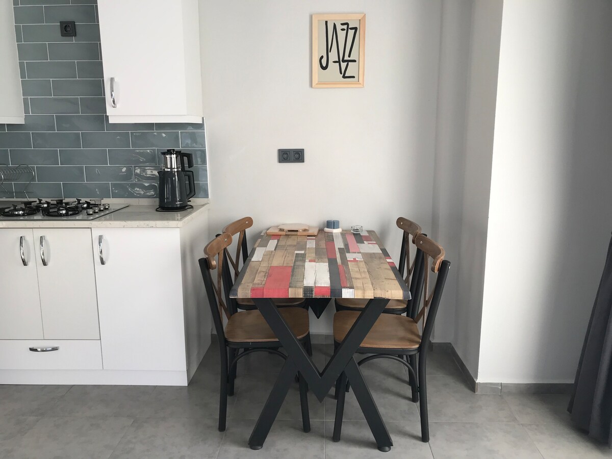 Ruhige Wohnung im obersten Stockwerk mit einer breiten Terrasse mit Blick auf die Bucht - die Art von Aussicht, die dich dazu bringt, dein Handy wegzulegen. Die Unterkunft ist einfach, sauber und mit allem ausgestattet, was man für einen kurzen Aufenthalt benötigt. Die Gegend ist ruhig, aber es ist nur 10 Gehminuten von der Stadt oder eine kurze Autofahrt von den Stränden entfernt. Es gibt auch eine malerische Waldwanderung hinauf zum verlassenen Dorf Kayaköy. Wir wohnen in der Nähe und versuchen, alles reibungslos, durchdacht und unauffällig zu halten, damit du deinen Aufenthalt genießen kannst.