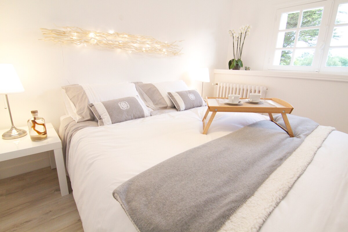 Willkommen im L'IROIZH, einem 30m² großen Studio, das entworfen wurde, um Ihnen ein unvergessliches Erlebnis zu bieten. Mit den Füßen im Wasser gelegen, befindet sich diese Oase der Ruhe in einer ruhigen Wohnanlage mit Blick auf den schönsten Strand von Concarneau 180°-Meerblick: Genießen Sie jeden Morgen ein exklusives Panorama. Bettwäsche & Handtücher werden gestellt ☺️ Privater Parkplatz Ultra-schnelles Wi-Fi Fiber: Um in Verbindung zu bleiben
