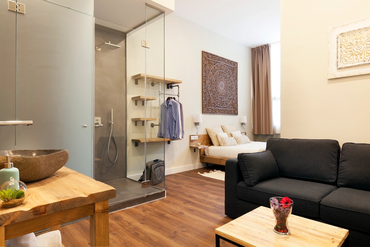 Fantastische renovierte Unterkunft mit allen Annehmlichkeiten, Dienstleistungen und Geschäften, die Sie im Herzen von Barcelona benötigen. Direkt nebenan finden Sie Gegenden von unschätzbarem historischem Wert, Gourmet-Restaurants für den Genuss des Gaumens und emblematische Spazierwege für Ihren Besuch. Du hast auch Verbindungen in der Nähe, um dich in allen wichtigen Bereichen bewegen zu können; wie Busbahnhof und U-Bahn eine Straße entfernt.