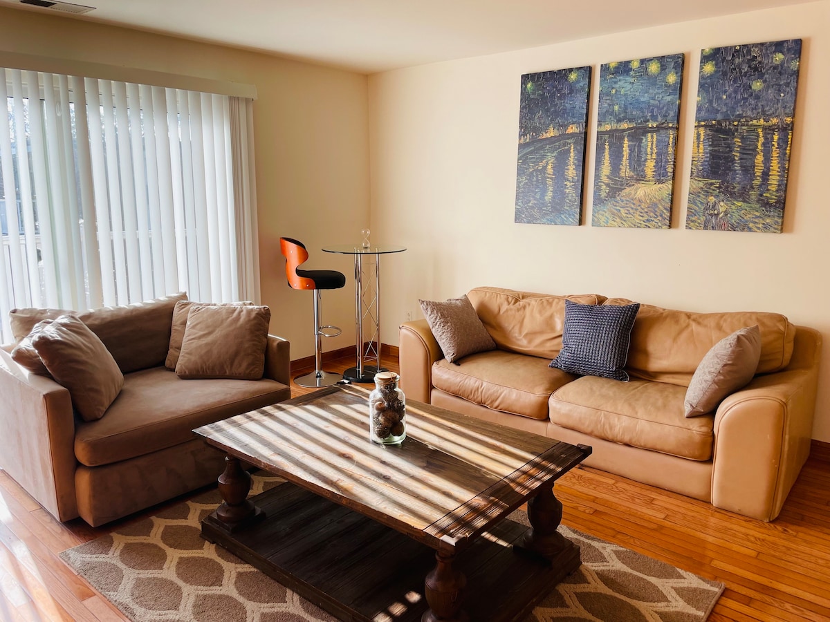 Genieße diese neu renovierte, voll ausgestattete Nichtraucher-Küche und das Badezimmer mit Quarz-Arbeitsplatten. Verstellbares Tempurpedic-Bett mit Lendenwirbel, Vibration, Unterbettbeleuchtung und Ritz Carlton-Kissen und Hotel Collection-Bettwäsche bringen dich in die Wolken. In der Nähe von Boeing, Flughafen (10 Min.) und Bahnhof 10 Min. zu Fuß. Dies ist ein großartiger ruhiger Ort zum Arbeiten. Die Wohnung ist privat mit einem schönen (bewegungserkannten) beleuchteten Ziegel- und Betonweg zum Eingang mit Terrasse auf der Rückseite. Keine Treppen. Muss ein Nichtraucher sein!