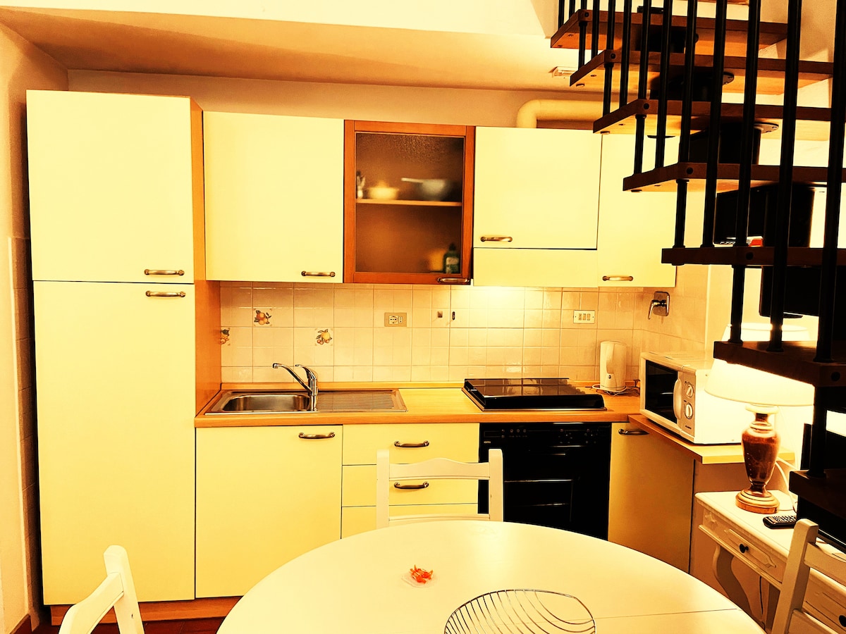 Die Wohnung ist ein Studio von etwa 45 qm, mit hohen Renaissance-Gewölbedecken und großen Fenstern mit viel Licht. Im Erdgeschoss befindet sich: Bad, Küche, Doppelbett. Im Obergeschoss auf dem Dachboden: Büro/Wohnbereich. Die Wohnung ist ausgestattet mit: TV, WLAN, Klimaanlage/Heizung, Haartrockner, Bettwäsche und Handtüchern.