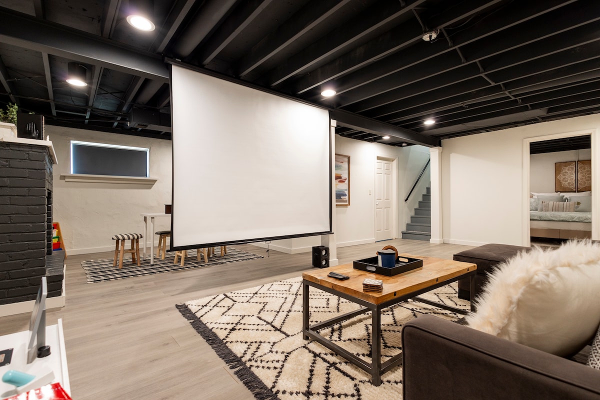 Neu fertiggestellter Keller mit 4. Schlafzimmer (Kingsize-Bett), großem Spiel-/Entspannungsraum und großer 120-Zoll-Projektorleinwand und separatem großem Lautsprecher für Filmabende! Die Betten sind alle aus brandneuem, komfortablem Memory-Schaum! Dieses Haus befindet sich in einer so großartigen und günstigen Gegend! Frisch renoviert mit brandneuen Betten und Möbeln, einer voll ausgestatteten Küche zum Kochen und Backen und einem eingezäunten, haustierfreundlichen Garten! JEDE MENGE Kinder- und Babyartikel!