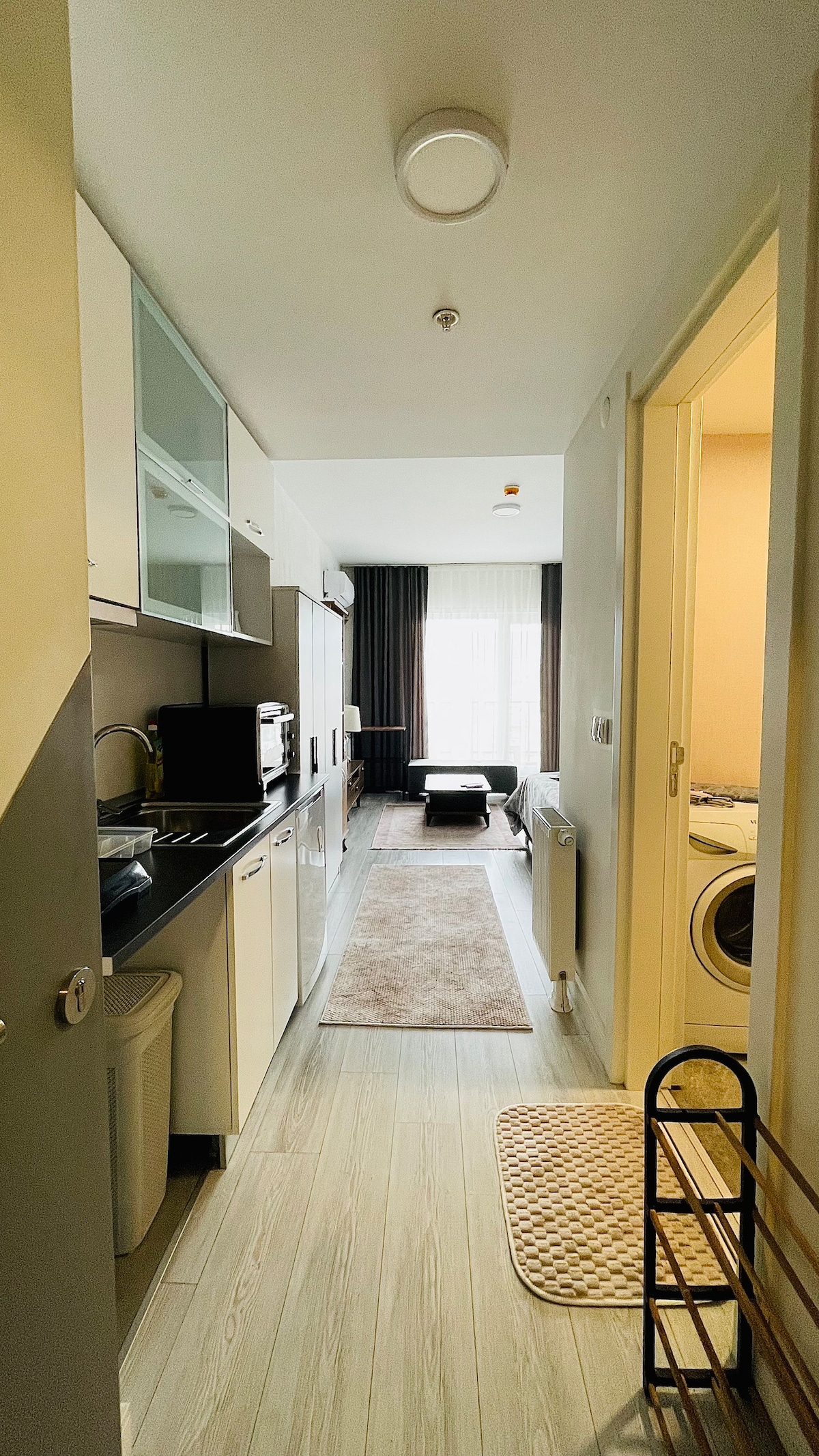 Du kannst gerne in einem neuen gemütlichen, ordentlichen und komplett renovierten Haus in der ruhigen und freundlichen Nachbarschaft von Konak, Izmir, übernachten. Die Unterkunft bietet alles, was du für einen entspannten und angenehmen Aufenthalt benötigst. Die Unterkunft ist in Grau-Weiß-Braun-Tönen mit süßen kleinen Dekorationen gehalten. Es liegt ganz in der Nähe des Stadtzentrums und die U-Bahn-Station ist nur wenige Gehminuten entfernt.