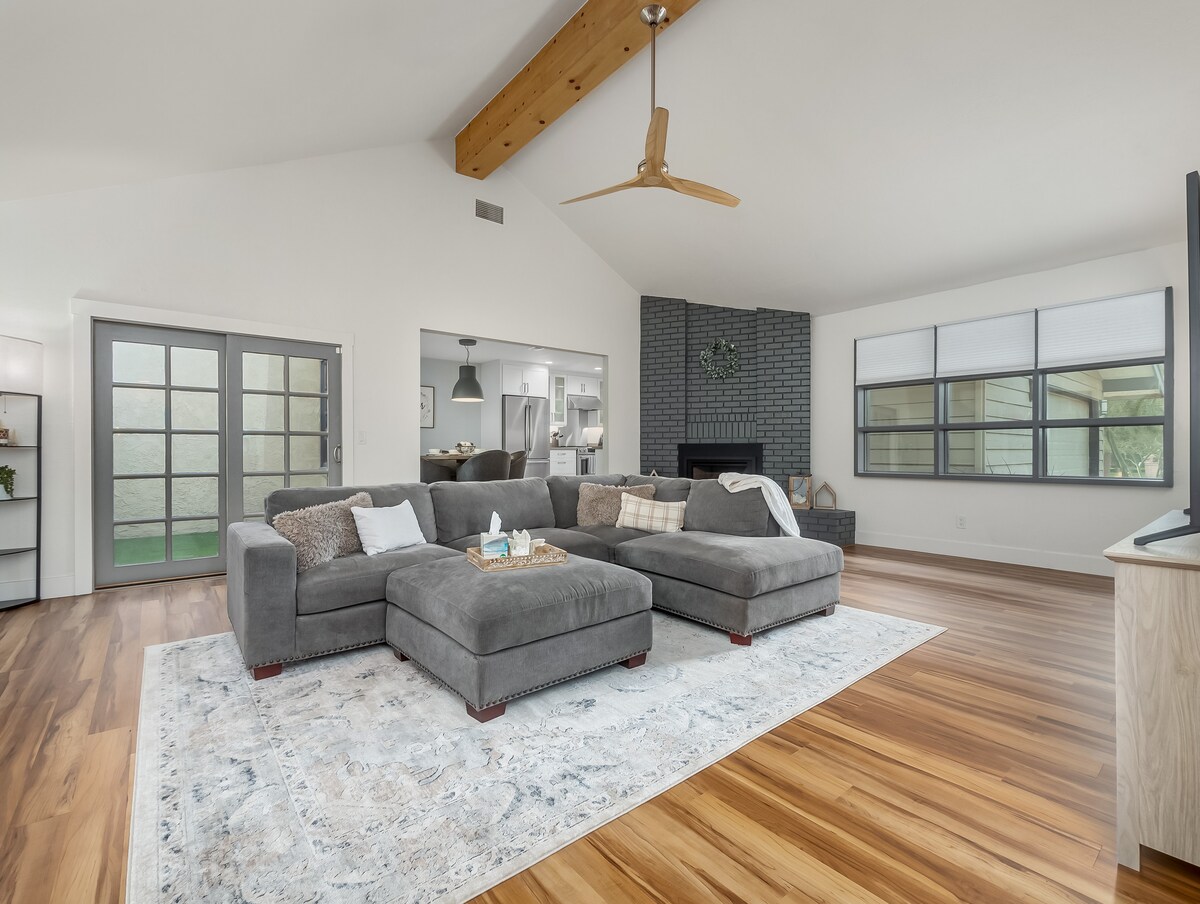 Entspanne dich in deiner privaten Oase in diesem neu renovierten Haus im Stil der Jahrhundertmitte! Wenn du dieses Haus mit 3 Schlafzimmern und 2 Bädern betrittst, wirst du von seiner stilvollen Architektur aus der Mitte des Jahrhunderts und dem modernen Retro-Dekor begeistert sein, die dich sicher inspirieren werden! Wir haben einen gemütlichen, stilvollen und entspannten Ort geschaffen, an dem du und deine Gäste euch im spektakulären Garten entspannen und erholen oder einfach den Tag am gemütlichen Kamin verbringen könnt, während ihr einige Schallplatten genießt!