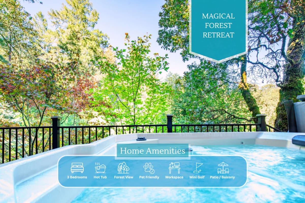 Verwandle deinen Aufenthalt in einen persönlichen Wellness-Rückzugsort. Genieße den Whirlpool, entgifte in der Infrarotsauna im Freien und entspanne dich auf der ruhigen Terrasse mit Blick auf die bewaldeten Hügel. Dieses gemütliche Haus mit zwei Schlafzimmern verfügt über ein Schlafzimmer mit Queensize-Bett, ein Etagenzimmer (zwei Einzelbetten über einem Doppelbett) und eine voll ausgestattete Küche. Entworfen für Reisende, die Natur, Erholung und einen ruhigen Neustart in Sonoma County suchen. Zwei Parkplätze vorhanden. 🌲♨️