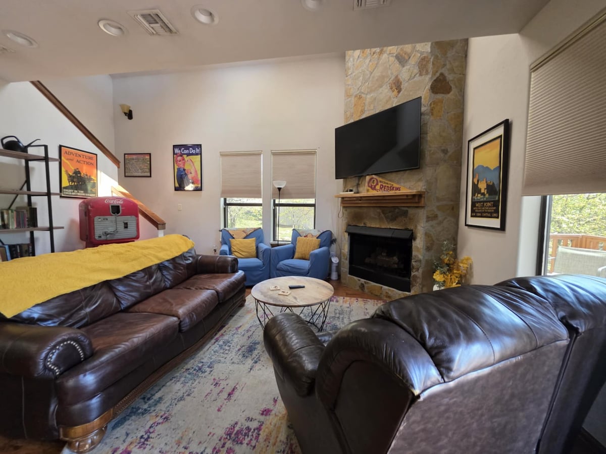 Familien- & gruppenfreundliche Unterkunft mit 5 Schlafzimmern auf 9 abgelegenen, parkähnlichen Acres mit Pool, Whirlpool, Kaminen, Gourmetküche, Ess- & Schlafmöglichkeiten für 22. 4 Kingsize-Betten, Billard, Darts, Spiele & mehr. Spaziere zu Wanderwegen, fahre 5 Minuten zum Medicine Park und Old Fort Sill. Ideal für Wiedersehen, Naturliebhaber und Familienspaß. Haustiere willkommen gegen Gebühr. Die Preise basieren auf der Anzahl der Gäste. > 30 Personen Veranstaltungsort Gebühren fallen an. Veranstaltungen von 30-50 $250, 50-75 $500, 75 bis 125 $1.000 Miete bis zu 80 Stühlen ($2,75 pro Stück) & 8 Tischen ($10 pro Stück)