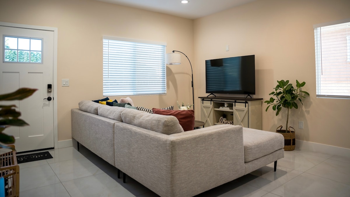 Enjoy a stylish experience at this centrally-located place. At our home we have put the details in design and comfort as the heart of your stay. Spacious 3 bedroom, 2 bath with 2 living rooms and a modern kitchen. 1 king bed, 1 twin, 1 full, 1 queen, and a mod L shape couch to maneuver to make it another sleeping space. The kitchen has a chef range output for those food lovers. Outside we offer a pool,4 hole putting green,outdoor seating,bbq, rice Equipped for month-to-month stays or long term