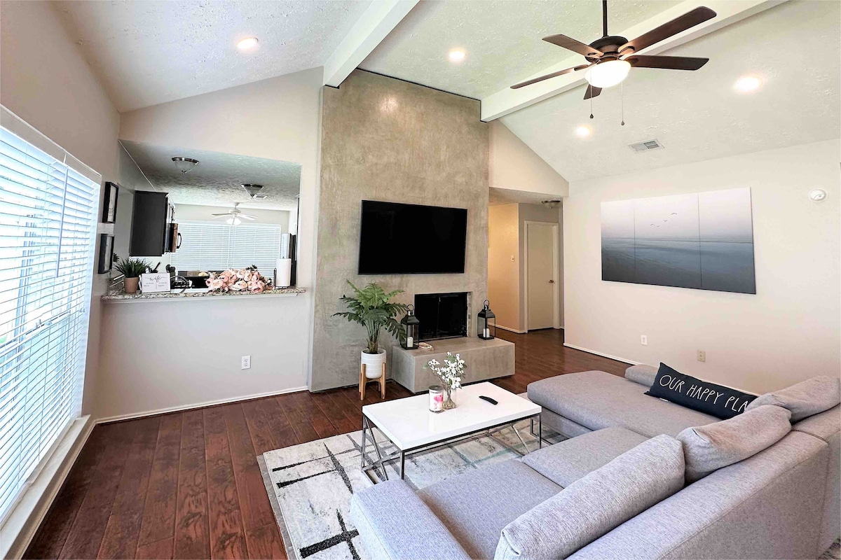 Willkommen in deinem perfekten Gruppenurlaub! Dieses geräumige Haus mit 5 Schlafzimmern verfügt über 9 Betten, ein stilvolles Esszimmer, einen großen offenen Wohnbereich und ein unterhaltsames Spielzimmer — ideal für Familien, Freunde oder Hochzeitsgäste. 🌟 Nur 3 Minuten von der schönen Safari Texas Ranch entfernt. 🌟 Nur 15 Minuten von Houstons lebendigem vietnamesischen Viertel und Chinatown in Bellaire entfernt, wo du tolles asiatisches Essen erkunden kannst. Egal, ob du erkunden oder entspannen möchtest, dieses Haus bietet Komfort, Bequemlichkeit und Platz für alle!