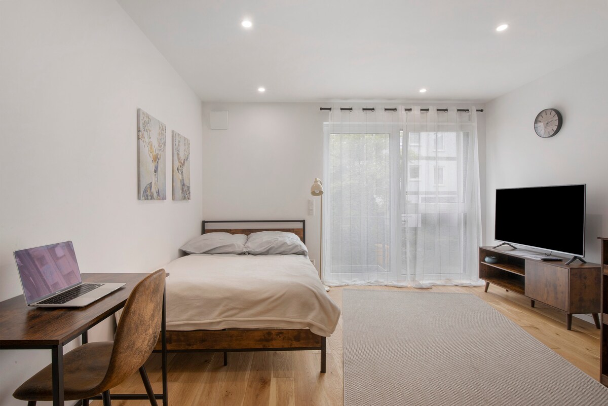 Gemütliches & ruhiges Studio in Augsburg-Hochzoll. Direkter Tram zum Weihnachtsmarkt. Freue dich auf ein helles Studio mit eigener Küche, Bad mit Dusche, einem gemütlichen 140-cm-Doppelbett sowie einem komfortablen Schlafsofa. Ein ausziehbarer Tisch bietet dir flexibel Platz – ideal für gemeinsame Mahlzeiten oder konzentriertes Arbeiten. Im Keller steht dir zudem eine Waschmaschine zur Verfügung. Tiere sind willkommen.
