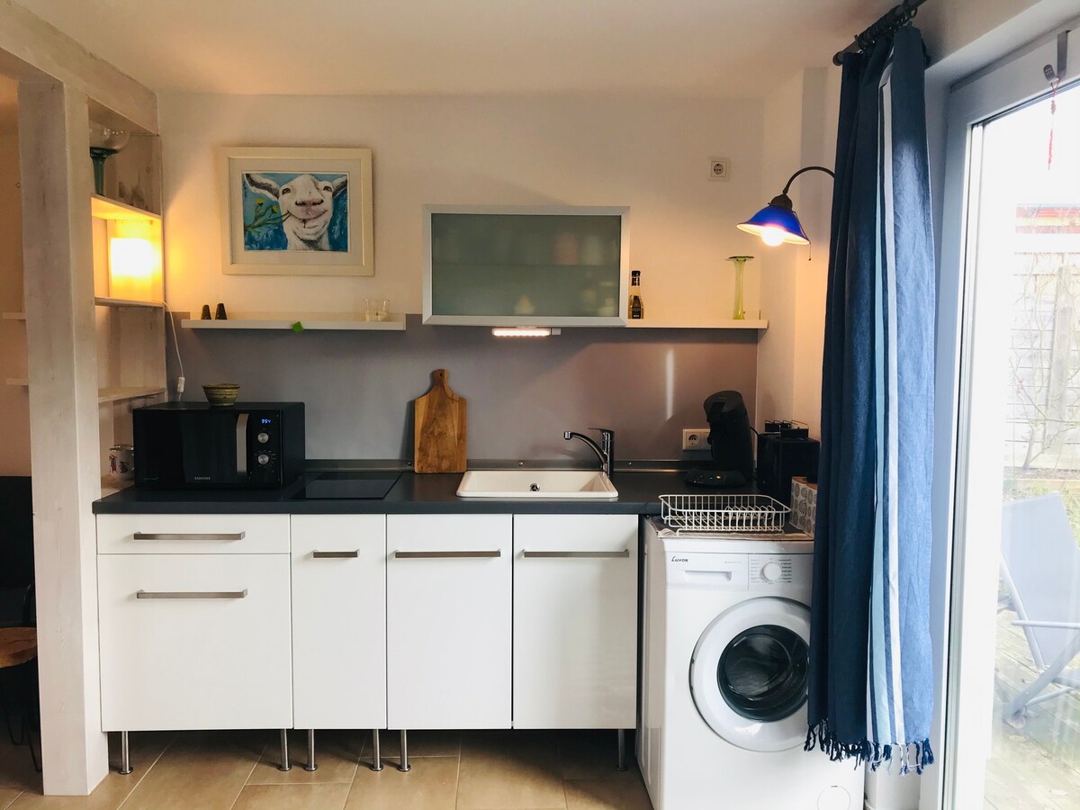 Die Ferienwohnung mit eigenem Eingang wurde hochwertig ausgestattet. Fussbodenheizung mit Eichendielen, Kamin, hochwertige Badausstattung (Wanne + Dusche). Die Einbauküche mit Geschirrspüler ist sehr gut ausgestattet und hat auch eine Nespresso Kapselmaschine zu bieten. Großzügiges Panoramafenster und Terasse Richtung Süd-West mit Blick auf das Trapenschutzgebiet laden zum Seele baumeln lassen ein. Genießen Sie die Entschleunigung vom Alltag - willkommen im Leben!