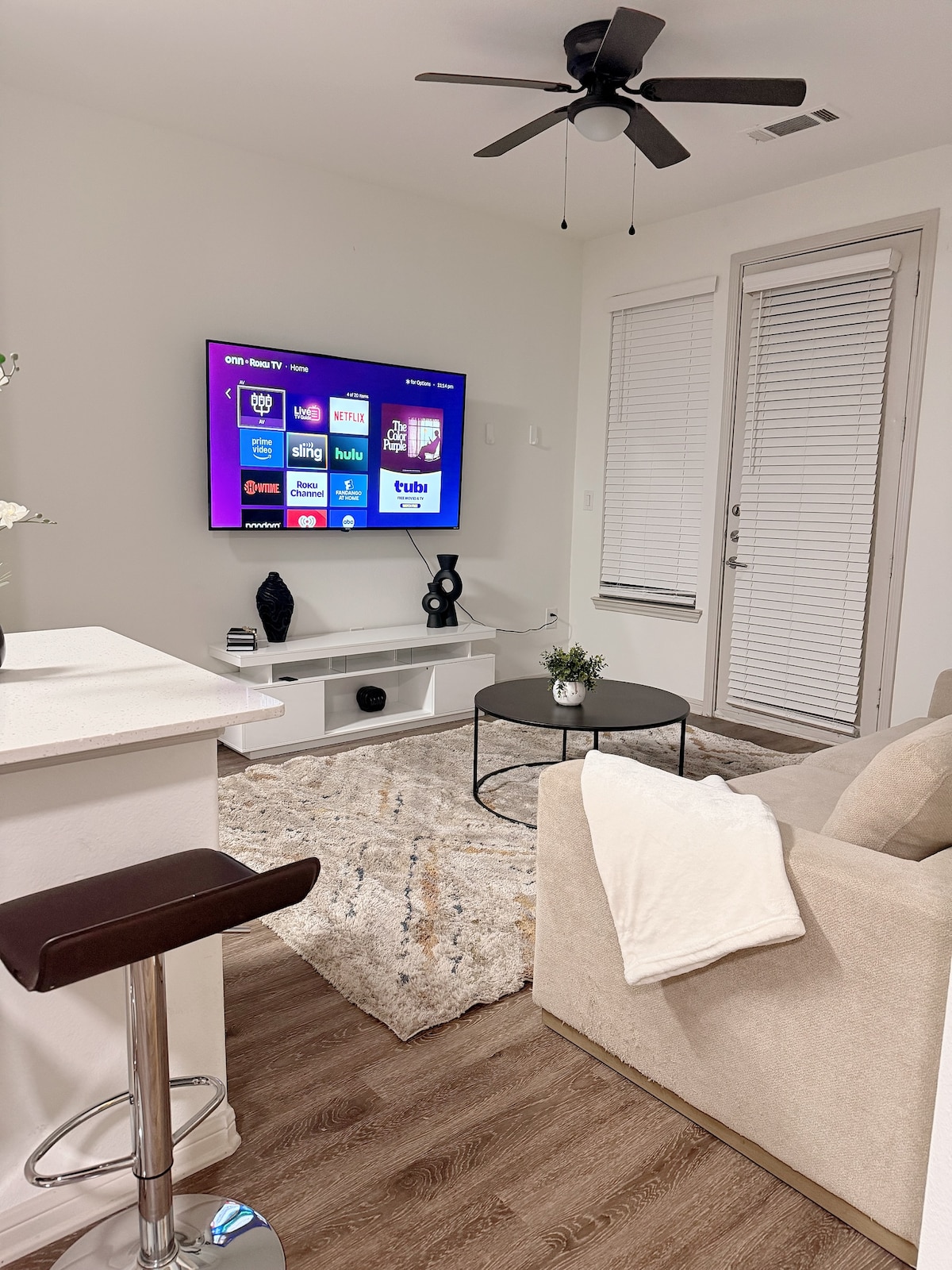 perfect for game days, concerts, or a weekend getaway. What you’ll love: • Drive under 5 mins and 11 minutes walking distance to the stadium, restaurants, bars • Queen-sized bed + comfy pull-out sofa (sleeps up to 3) • Fully equipped kitchen with modern appliances • Fast Wi-Fi & Smart TV for streaming • street parking • Self check-in with lock pad for convenience Work station included with desk and chair Book now and enjoy the best seat in town—just outside your door