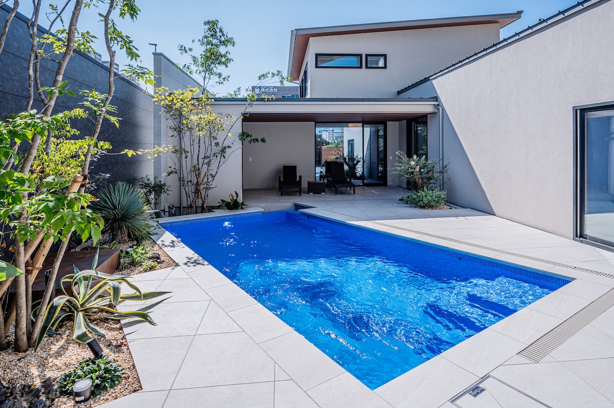 Freistehende Villa in Fukuoka, 1 Gehminute vom Bahnhof entfernt, privater Pool, Golfsimulation, Innensauna