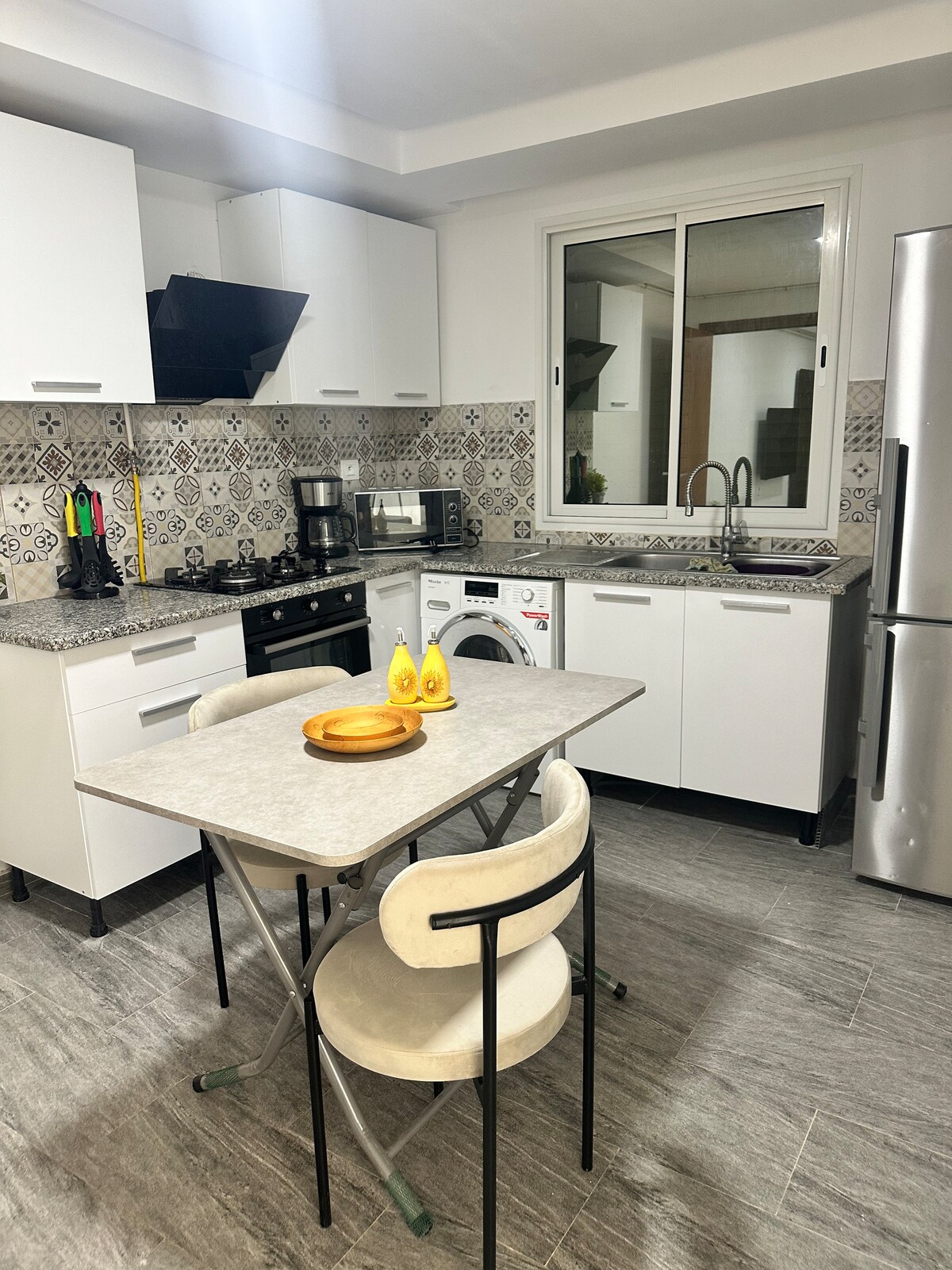 Willkommen in unserer gemütlichen und komplett möblierten Wohnung im Herzen von Gabès! Die Unterkunft bietet Platz für bis zu 4 Personen und ist ideal für Paare, Freunde oder Familien die Gabes besuchen möchten. Dank der zentralen Lage erreichen Sie die Innenstadt von Gabès in wenigen Minuten zu Fuß oder bequem mit dem Taxi. Ein eigenes Auto ist nicht zwingend erforderlich – dennoch stehen Ihnen vor der Wohnung kostenlose Parkmöglichkeiten zur Verfügung, falls Sie mit dem Auto anreisen.