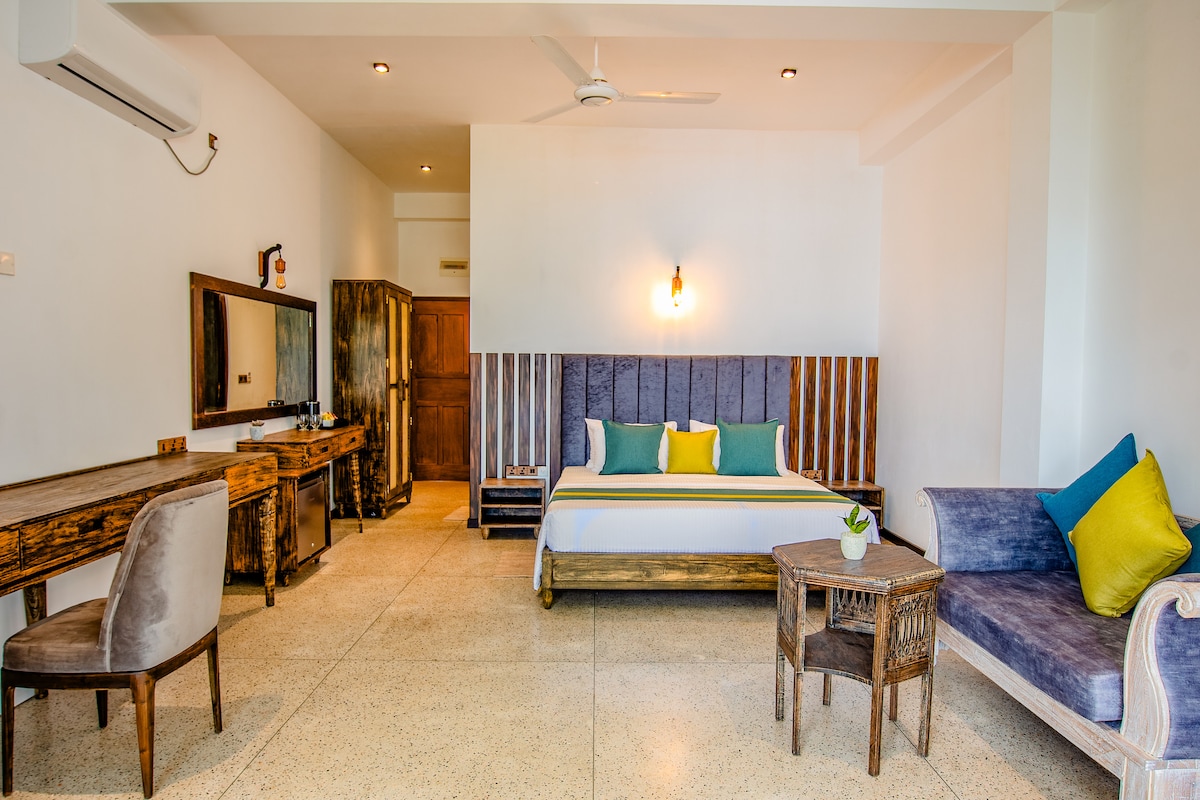 Stay in the heart of Unawatuna, Galle! Our stylish A/C double room offers comfort, convenience, and a relaxing stay. We have 17 well-maintained rooms; your room (ground, 1st, or 2nd floor) is assigned based on availability—notify us early for ground-floor requests. Perfect for couples, solo travelers or families. Nearby: 0.5 km Unawatuna Beach 1.8 km Dalawella/Turtle Beach 2.2 km Dewata Surf Beach 2.3 km Jungle Beach 4.9Km Talpe Rock Pool Beach 5 km Galle Fort 7 km Sea Turtle Farm