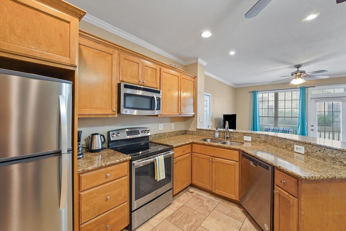 Neu renoviert mit einem gemütlichen Strandhüttengefühl. Meine Eigentumswohnung liegt DIREKT AM STRAND. Überquere nicht die viel befahrene Autobahn mit deiner Familie. Platz für 6 Personen. Verstellbares Queensize-Bett und Queensize-Schlafsofa mit 2 Etagenbetten. Neue Küche, 2 Flachbildfernseher. Kostenloses WLAN und NetFlix. Der Komplex verfügt über einen großen beheizten tropischen Pool mit 3 Whirlpools. Privater Zugang zum Pool und Strand. Das Grundstück ist mit Sicherheit abgeschlossen. Ein Safe zur Aufbewahrung deiner Wertsachen ist kostenlos für deine Nutzung. 10 Minuten von Moody Gardens oder Pleasure Pier entfernt. Rampen für Behinderte
