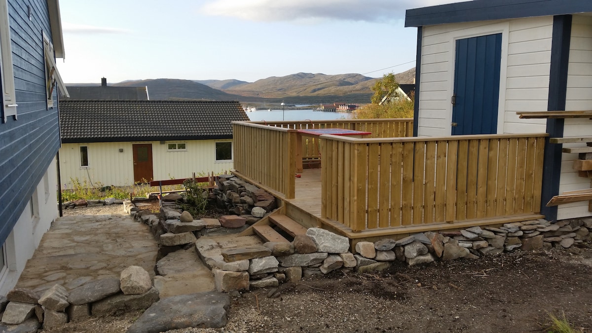 The cozy blue house is an idle place for friends, families, and singles. The house is completely renovated, very cozy & fully equipped incl. fireplaces. There is a garden, a sauna, free parking and a nice view of the harbor and the mountains. You can rent the flat on the 1. floor. Mehamn is a great location for berry and mushroom picking, hiking, fishing, watching polar lights, snowmobile tours, delicious food, Sami excursions, ice fishing etc.