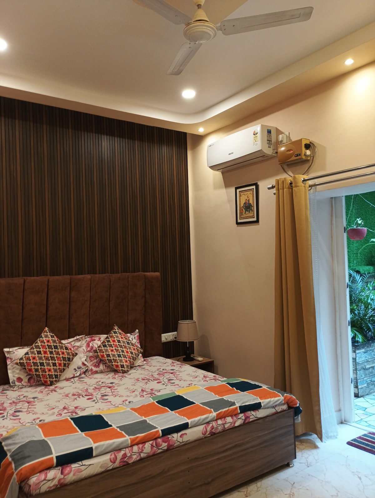 Erlebe Luxus in dieser 5-Sterne-Suite mit 2 Schlafzimmern neben dem legendären Taj Mahal Hotel in Lucknow mit einem kostenlosen Frühstück! Genieße den unabhängigen, ruhigen Bungalow (2 große miteinander verbundene Zimmer mit 1 luxuriösen Warmwasserbad), einen privaten Garten, der perfekt für Kaffee oder abendliche Gespräche ist, und erstklassigen Komfort – 55-Zoll-Smart-TV, Highspeed-WLAN, Besprechungsraum und eine gefüllte Speisekammer. Tauche ein in den königlichen Charme von Lucknow, nur wenige Schritte von Einkaufszentren und dem KNK-Salon für ultimative Entspannung entfernt. Wir warten darauf, dich begrüßen zu können!