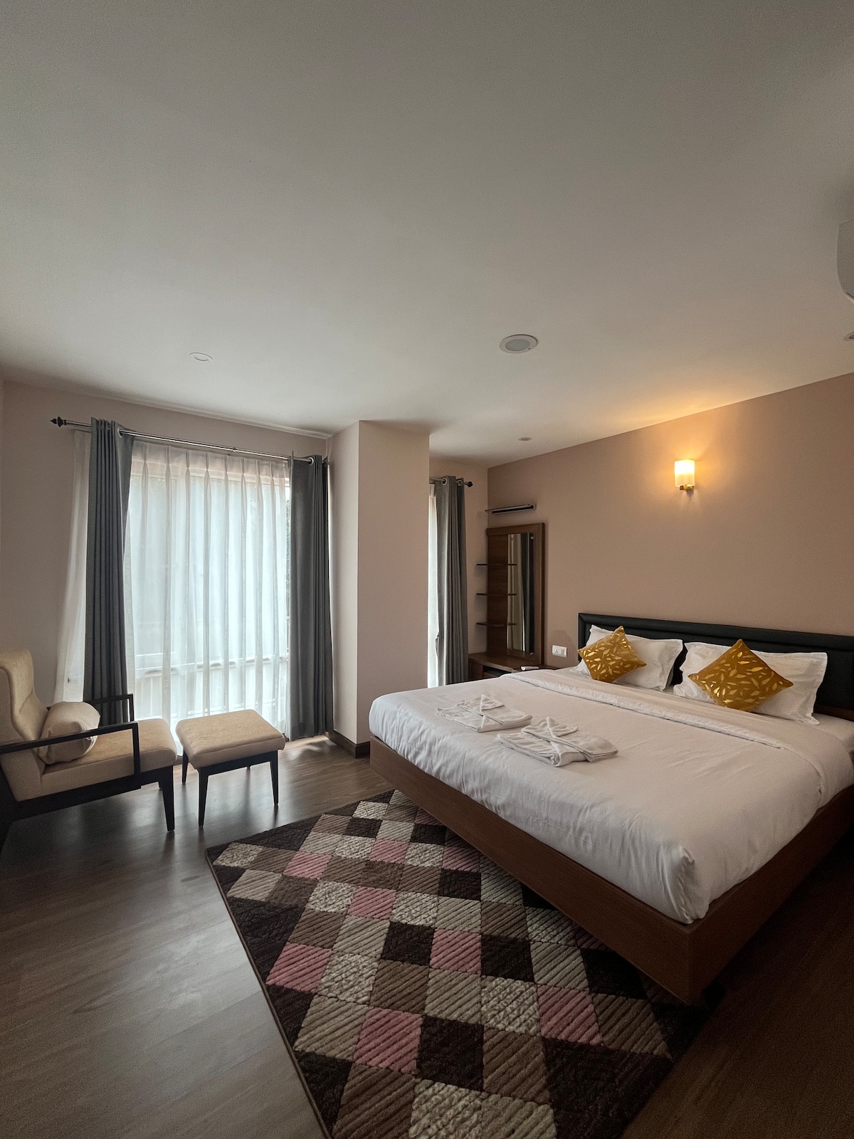 Welcome to Sungava Apartments, Pokhara Panoramic Annapurna Views from the 11th floor, perfect for couples or small families seeking short to extended stays. ▪️Brand new, Level 7 Condo w/ pool ▪️Secured Complex ▪️1 Queen Bed ensuite, 2 single beds ▪️Work desks ▪️250 Mbps internet ▪️Walking distance to stores ▪️6km from Lakeside, 12 mins in Taxi ▪️Food delivery apps available ▪️Rideshare accessible ▪️1,160 sq ft interior, 640 sq ft terrace 🏆 Hosted by a Superhost with 10+ years experience