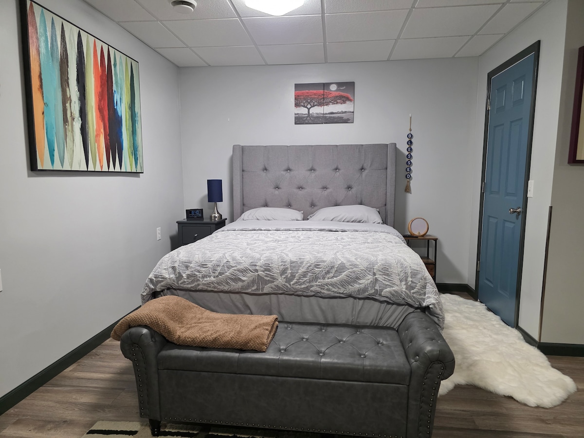Die Suite ist ein gemütlicher Ort, um sich von deinen Reisen zu erholen oder zu übernachten, während du Familie/Freunde besuchst. Abseits des Trubels der Innenstadt, aber nur eine 10-minütige Fahrt von allen Veranstaltungsorten in der Innenstadt von Grand Rapids entfernt. Es ist eine kleine, aber gut ausgestattete Suite, ein abgeschlossener Raum an der Vorderseite unseres Hauses. Das Tanger Outlet ist 1 Meile entfernt, um bequem einzukaufen. Es gibt eine Reihe von Restaurants in der Nähe, aus denen du wählen kannst. Kontinentales Frühstück (pflanzlich) mit heißem/kaltem Müsli, Brot, Obst, Kaffeebar.