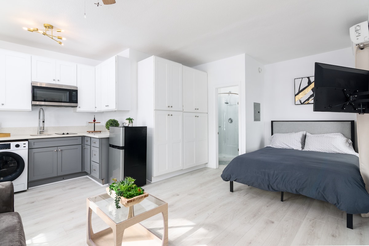 Diese helle und moderne Studiowohnung ist die grundlegende Heimatbasis in San Diego. Die Lage ist SELTEN und liegt nur wenige Gehminuten von den angesagtesten Vierteln in der Innenstadt, dem Zoo, dem Balboa Park und auch nur eine 10-minütige Fahrt vom Strand entfernt. Dieser helle, luftige und mit allem Nötigen ausgestattete Raum eignet sich perfekt für kleine Gruppen oder Geschäftsreisende, die Downtown SD erkunden möchten, indem sie im Herzen bleiben. Wenn du in einem wirklich einzigartigen Juwel in der Innenstadt übernachten möchtest, brauchst du nicht weitersuchen.