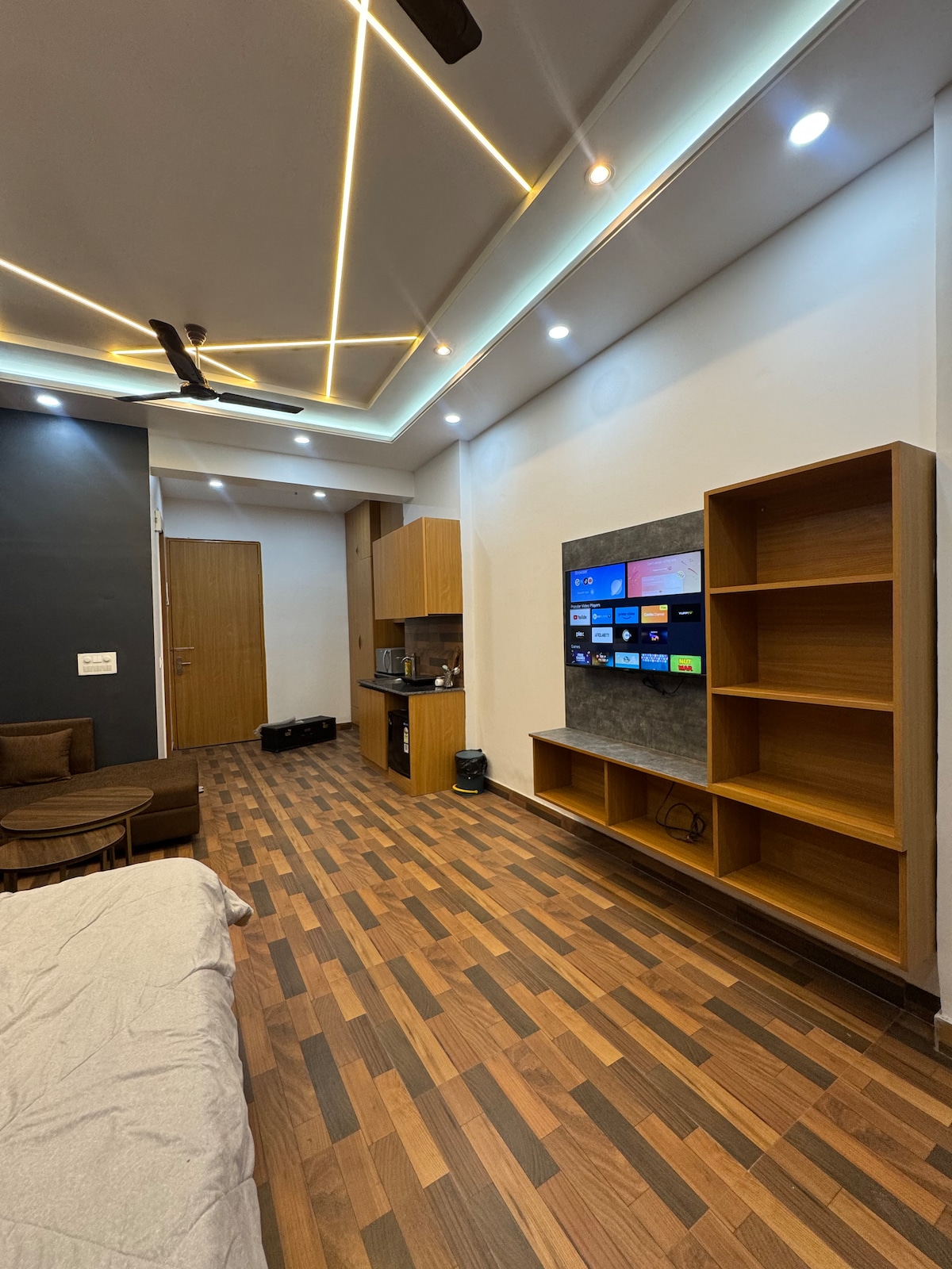 Fully furnished luxurious studio apartment with all modern amenities available in Greater Noida near Metro station. Luxurious , Specious and Couple friendly studio in Greater Noida Near Expo Mart. What You’ll Love: ✔ Unique Interior – Enjoy the Mesmerizing Interior. ✔ Modern Comfort – A beautifully furnished space with a comfy bed, cozy seating, and stylish decor. ✔ Fully Equipped Kitchen – Cook your favorite meals with ease. ✔ Fast WiFi & Smart TV – Stay connected and entertained.