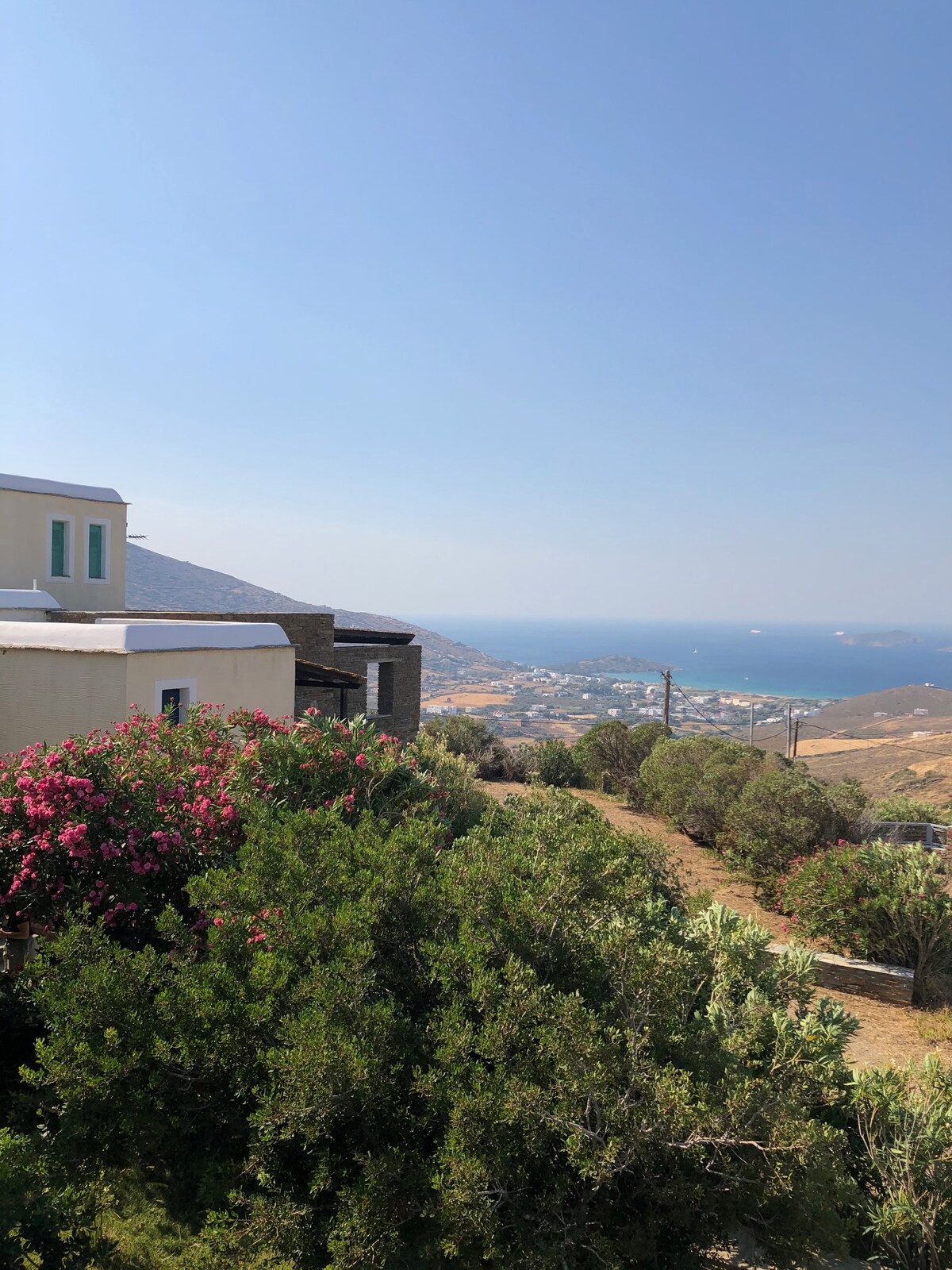 Willkommen in unserem Haus in Andros. Abseits von Nachbarn und lauten Gegenden, auf einem 2 Hektar großen Grundstück, ist es ideal für diejenigen, die einen ruhigen und erholsamen Urlaub suchen. Es ist geräumig und angenehm, mit gemütlichen Innen- und Außenbereichen und atemberaubendem Blick auf die Ägäis. Es befindet sich an der südwestlichen Küste der Insel und ist sehr praktisch, um sie zu erkunden. Es ist ideal für Familien und Freunde, die dem Alltag entfliehen möchten.