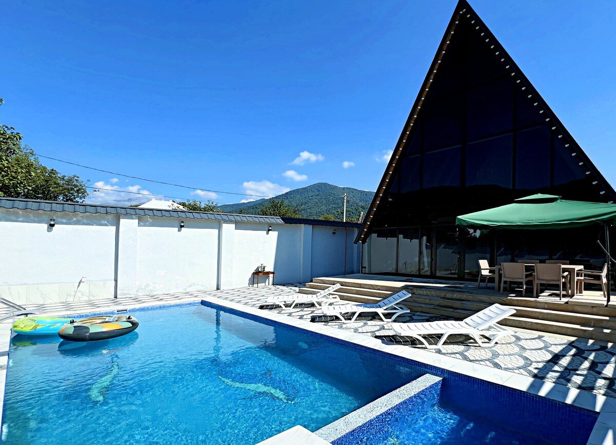 Neu erbaute Villa im Zentrum von Gabala, am Fuße des Kaukasus. Mit 3 Schlafzimmern, einem geräumigen Wohnzimmer, 3 Klimaanlagen, 2 Badezimmern, 2 Toiletten, über 260 Premium-TV-Kanälen, Highspeed-Glasfaser-Internet und Bergblick. Der Hof bietet einen gefilterten Intex-Pool, Grill, Samowar, Tisch und Stühle. Frische Luft, voller Komfort — ideal für Familien und Gruppen, die Natur und Ruhe suchen.
