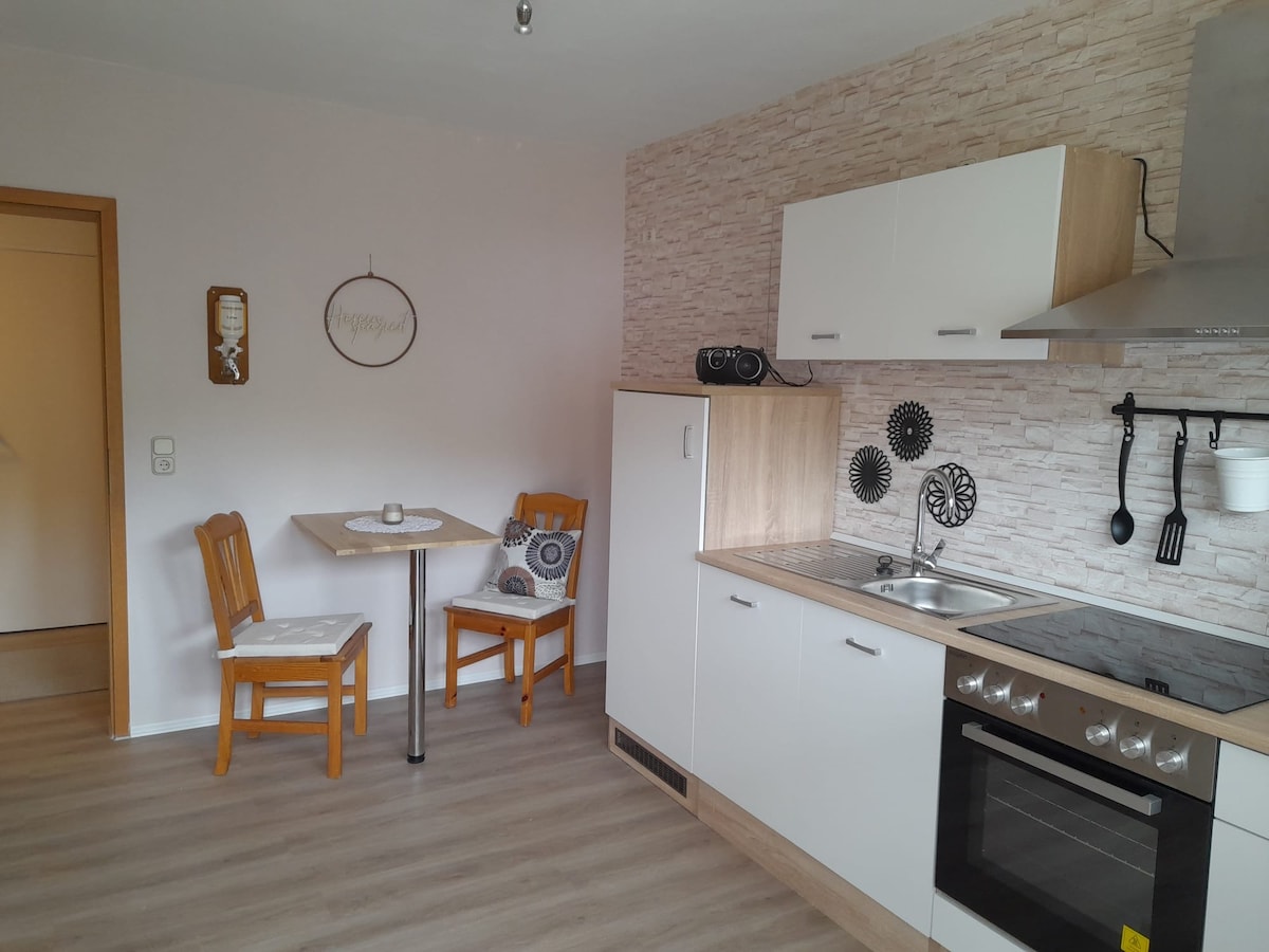 Die Wohnung ist sehr geräumig. Das Badezimmer ist mit Dusche und Badewanne ausgestattet und sehr groß. Hier kannst Du Deine Seele baumeln lassen, erholsame Tage erleben im Einklang mit einer wundervollen Natur sein. Alle Räume mit Küche und Bad kannst Du voll nutzen. In der Nähe findest Du tolle Wanderrouten, Stauseen, Europas größter erloschener Vulkan und sogar ein Schwimmbad in der Nähe zu Fuß. Ein Thermalbad mit Salzgrotte ist in 13 Km Entfernung (Bad Salzhausen).