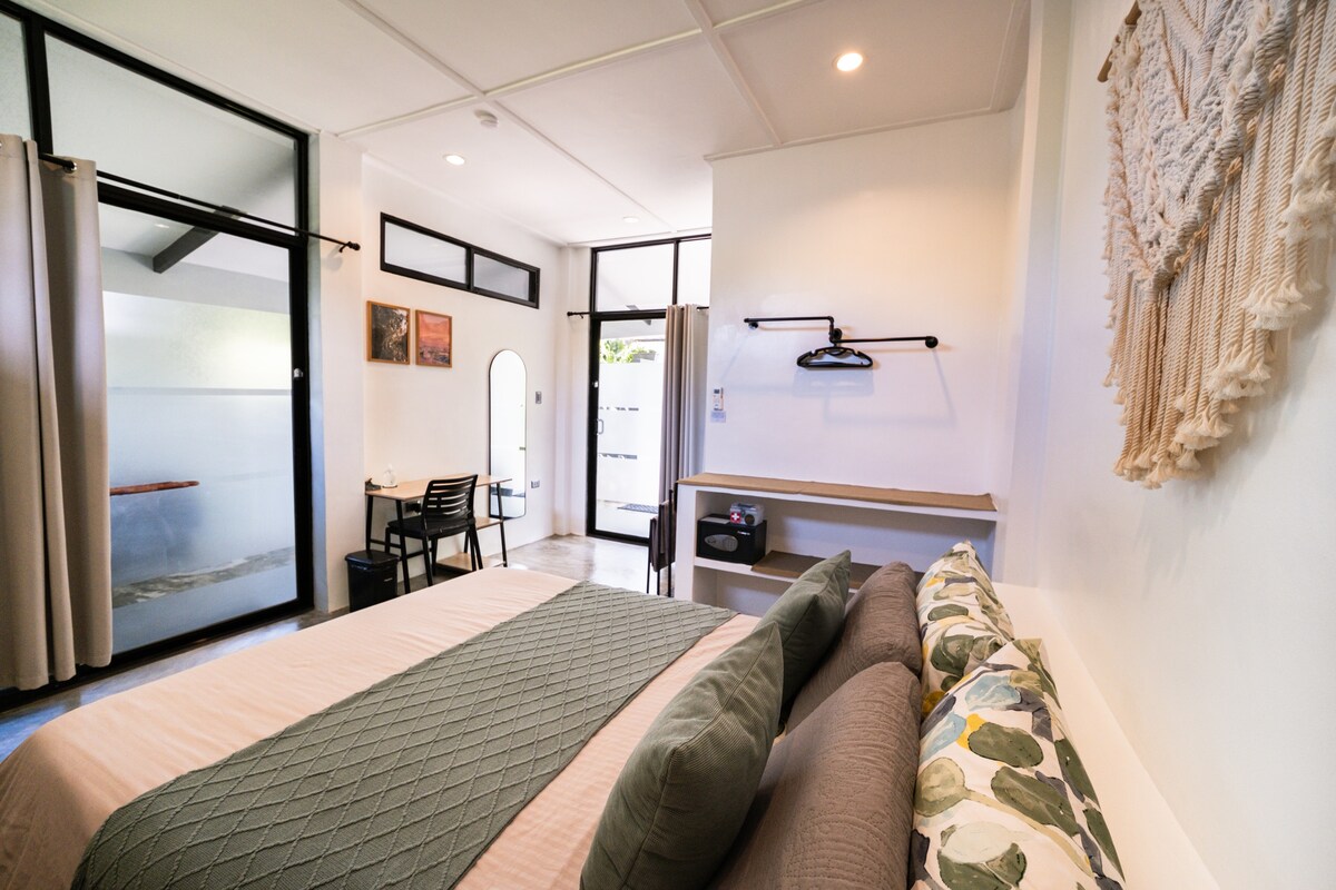 – Dre's Unterkunft Dieser durchdacht gestaltete Raum kombiniert modernen Komfort mit entspannten Insel-Vibes – mit einer Luxusmatratze, Premium-Kissen und -Bettwäsche, einer heißen Dusche und einer voll ausgestatteten Küche mit grundlegenden Kochutensilien und einem Reiskocher. Entspanne dich nach einem Tag Surfen oder Erkunden mit Netflix auf dem Smart-TV oder entspanne dich im kühlen, sauberen Raum mit schnellem Starlink-WLAN. Egal, ob du hier bist, um zu surfen, zu essen, zu erkunden oder einfach nur zu entspannen, unser Studio ist die ideale Ausgangsbasis für dein Siargao-Abenteuer