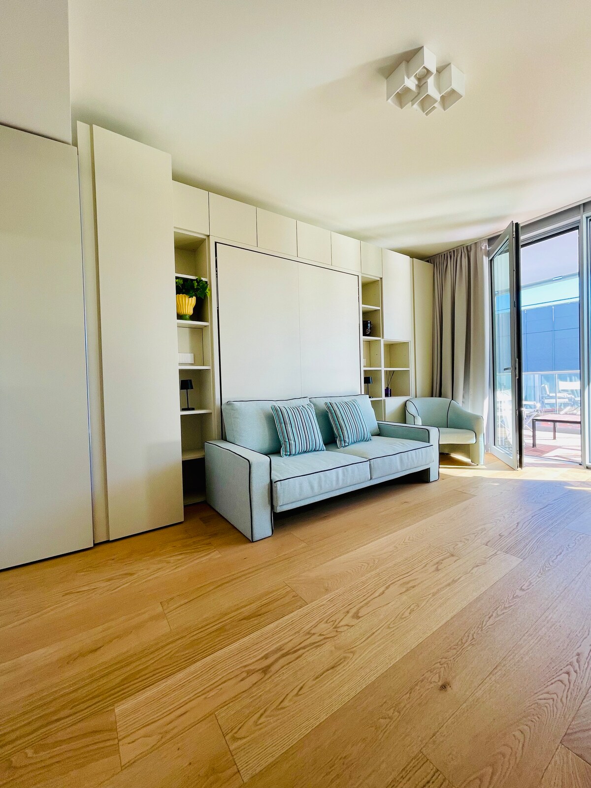 Schöne und brandneue Wohnung in der Wohnanlage Waterfront di Levante by Renzo Piano, mit Garage, Rezeption, Überwachung, Fitnessraum und Coworking-Räumen. Die Unterkunft verfügt über ein helles Wohnzimmer mit Küche, Schlafzimmer mit Doppelbett, ein Badezimmer und eine große Terrasse mit Blick auf das Meer und die Stadt, ist auf Anfrage verfügbar, die Garage zum Preis von 10 € pro Tag. Bootsmesse und Palazzo Sport unter dem Haus, Corso Italia 1 min, Zentrum und Aquarium nur wenige Minuten zu Fuß oder mit dem Auto/Bus. Wir warten auf Sie!