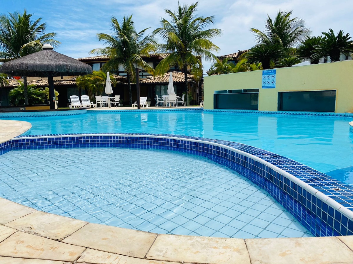 Casa de luxo em condomínio pé na areia com muito conforto e infraestrutura. A casa tem 12 ar condicionados com clima agradável em todos os ambientes : 5 na área gourmet, 2 na sala, 1 em cada suíte total 5. 5 suítes com 5 camas Queen em cada suite e 2 camas de solteiro na suite rosa. Roupas de cama 400 fios e toalhas 300 fios. Na lateral da casa, 3 duchas com água quente/fria Deca, uma opção no retorno da praia. 11 cadeiras e 8 toalhas de praia, 1 cooler 4 vagas de garagem numeradas.