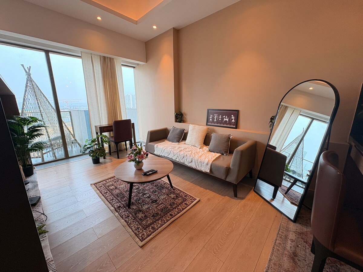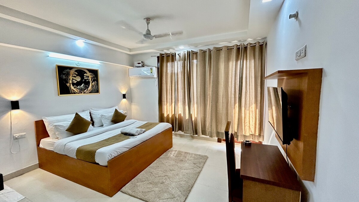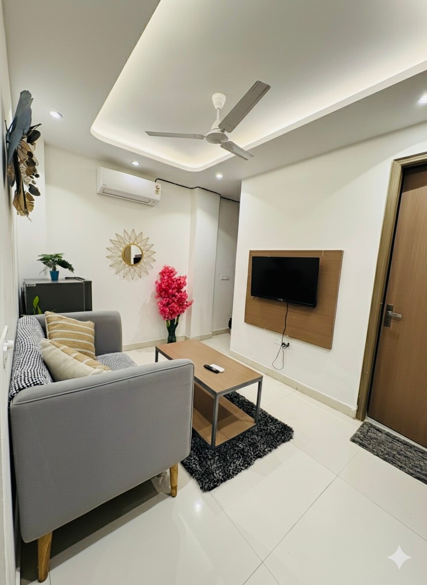 Willkommen im Aravalli's Whisper — einem stilvollen, sonnendurchfluteten Raum mit beruhigendem Blick auf die Aravalli, der sich im Herzen des Sektors 59 befindet. Mit sanften Tönen, sauberem Dekor und einer entspannten Atmosphäre ist es der perfekte Ort, um sich zu entspannen oder in Ruhe zu arbeiten. Genieße eine gemütliche Lounge, einen komfortablen Schlafbereich und eine voll ausgestattete Küche – alles sorgfältig für Komfort und Stil zusammengestellt. Große Fenster füllen den Raum mit natürlichem Licht, und Vorhänge in voller Länge bieten Privatsphäre, wenn du sie brauchst.
