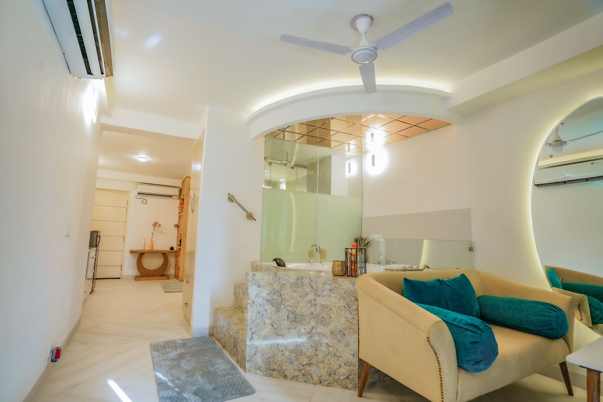 Willkommen im Project Artisan's Retreat - einer durchdacht gestalteten und stilvollen Einzimmerwohnung, die hoch über dem lebhaften Treiben von Noida liegt und sich auf einem belebten Einkaufszentrum befindet. Egal, ob du ein Alleinreisender, ein Berufstätiger, ein digitaler Nomade oder ein Paar bist, das einen gemütlichen Rückzugsort sucht, dieses gehobene urbane Erlebnis bietet die perfekte Balance aus Kreativität, Komfort und Bequemlichkeit. Project Artisan Retreat bietet mehr als nur einen Aufenthalt – es ist ein Erlebnis. Vom Blick auf den Sonnenuntergang bis zu Spaziergängen bei Mitternacht.