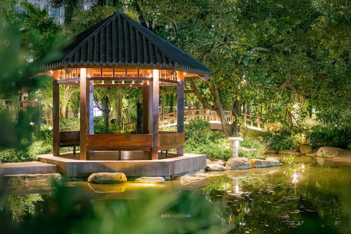 Hochwertig möblierte Wohnung, japanischer Stil mit 1 Schlafzimmer und 1 WC, Stehdusche, intelligente Toto-Toilettenausstattung - im Landmark 2, Swanlake Onsen, in der zentralsten Lage im Ecopark - mit Panoramablick auf den Swan Lake Park, Inselvillen, zukünftiges Geschäftszentrum des Ecoparks, Verbindung zu den umliegenden Gebieten: Golfplatz, EPGA-Golfakademie, Food Street, Supermarkt, Restaurant, Café, Fitnessraum, Spa, 4-Jahreszeiten-Außenpool, Garten, japanischer Koi-Fischteich...