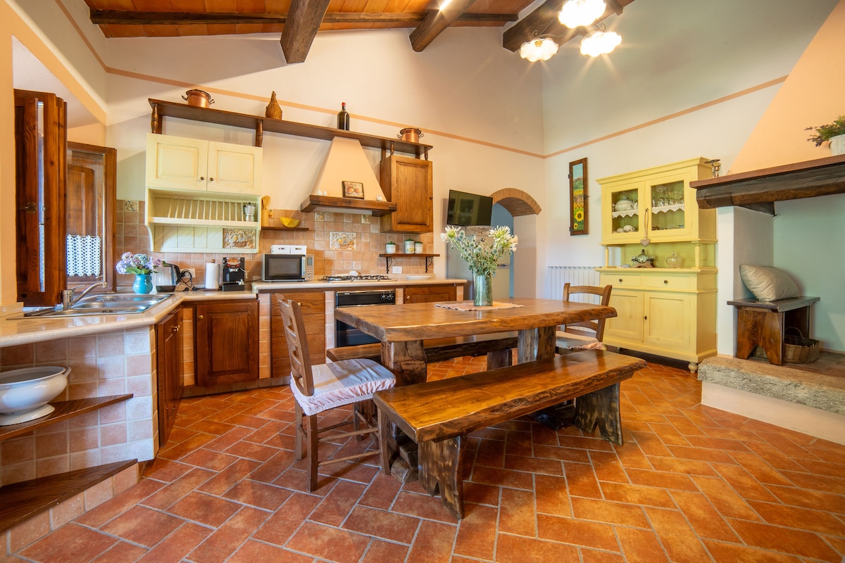 WIR ARBEITEN FÜR DICH! ... WIR ARBEITEN FÜR DICH! Das Haus wurde 2018 komplett renoviert und mit Möbeln im klassisch-toskanischen Stil eingerichtet. Die Farben sind warm und umhüllend, um dich während deines Urlaubs der Ruhe und Entspannung besser auszuruhen. Zusätzlich zu den beiden Doppelschlafzimmern verfügst du über eine Küche mit einer ausgestatteten Küchenzeile, einem Kühlschrank, einem Induktionsherd und einer möblierten Terrasse mit einem schönen Blick auf die umliegende Landschaft.