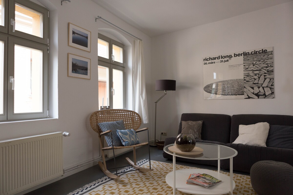 Mein Künstlerstudio liegt im Szeneviertel Berlins im Prenzlauer Berg in der 1. Etage mit einem Balkon und großen französischen Fenstern zum ruhigen, sehr hellen Hof. Das Studio ist ein separater Teil meiner Wohnung mit einem eigenen Zugfang. Der Blick zeigt auf eine alte, sehr schön sanierte Fabrik mit Lofts und Studios. Mein Studio ist sehr geräumig mit 40 Quadratmetern, hat ein Doppelbett, eine Miniküche mit allen Dingen zum Kochen und Wohlfühlen. Das Apartment besitzt einen hellen Flur und ein Luxusbad mit Dusche und Badewanne und Fußbodenheizung. Das Studio ist circa 50 Qudartmeter groß und ist mit vielen persönlichen Dingen geschmackvoll eingerichtet. Ein Mix aus modern und antik. Ihr habt ein schnelles Internet. Die Gegend ist sehr beliebt, Ihr habt 2 min. entfernt einen großen supermarkt, der bis 24.00 Uhr geöffnet hat. In der unmittelbaren Gegend findet ihr viele kleine, besonders schöne Cafés, internationale Restaurants, Boutiquen, feine Trödlerläden, Galerien und Märkte. Vor dem Haus stehen Fahrräder zum ausleihen, um die Stadt auf gut ausgebauten Radwegen zu erkunden.10 Minuten entfernt gibt es einen großen Park zum spazieren oder joggen.15 Minuten entfernt findet ihr den berühmten Mauerpark mit vielen Attraktionen, am Wochenende den begehrten Trödelmarkt. Meine Strasse liegt ruhig genau zwischen 2 großen Strassen mit phantastischen Verkehrsanbindungen nach Flughafen Tegel mit der Tram M2 von der Prenzlauer Allee nur 3 Stationen zum zentralen Alexanderplatz und dann mit dem TXL Bus direkt zum Flughafen 30min. Oder zum Flughafen Schönefeld mit der Tram4 auch nur 3 Stationen zur Greifswalder Strasse und dann mit der S-Bahn direkt 20 min. zum Flughafen. Die Tram M10 fährt von mir 5 min. entfernt Fußweg (Danziger Strasse) 24 Stunden lang durch alle Szenebezirke wie Mitte, Wedding, Prenzlauer Berg, Friedrichshain, Kreuzberg. Auch bis zur berühmten east side gallery. Ganz in der Nähe zum Laufen 10min. gibt es die berühmte shopping Meile Kastanienallee und Alte Schönhauser Allee. Hier leben sehr viele junge Menschen aus der ganzen Welt. Ihr werdet Euch ganz sicher in meinem Apartment sehr wohl fühlen.