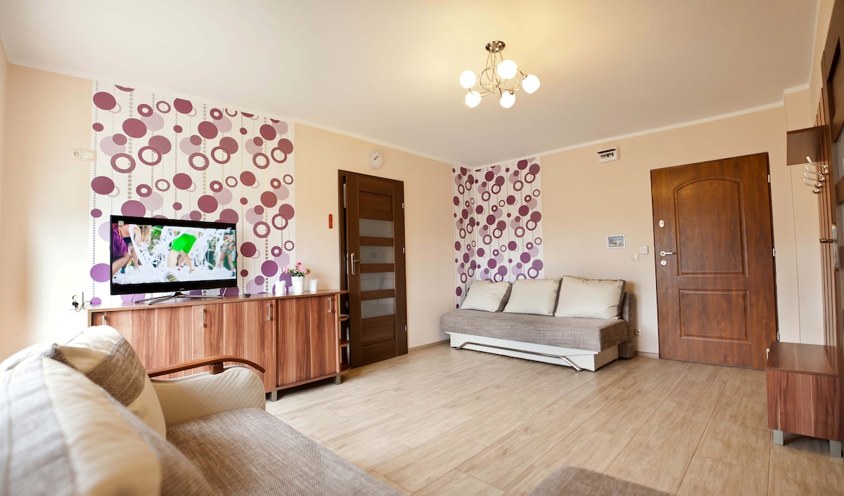 Gemütliche Wohnung im Herzen von Leba! Willkommen in unserer komfortablen Wohnung im Herzen von Łeba! Perfekte Lage – nur ein paar Gehminuten von den Stränden A und B und einem malerischen Kanal entfernt. Es ist eine großartige Wahl für einen Urlaub, einen Familienurlaub oder einen romantischen Kurzurlaub. - Zweiter Stock mit Balkon -1 Schlafzimmer mit bequemem Bett - Salon, der ein zusätzliches Schlafzimmer sein kann - Eine voll ausgestattete Küche - Schnelles WLAN und TV - Geschäfte, Restaurants, Cafés in unmittelbarer Nähe