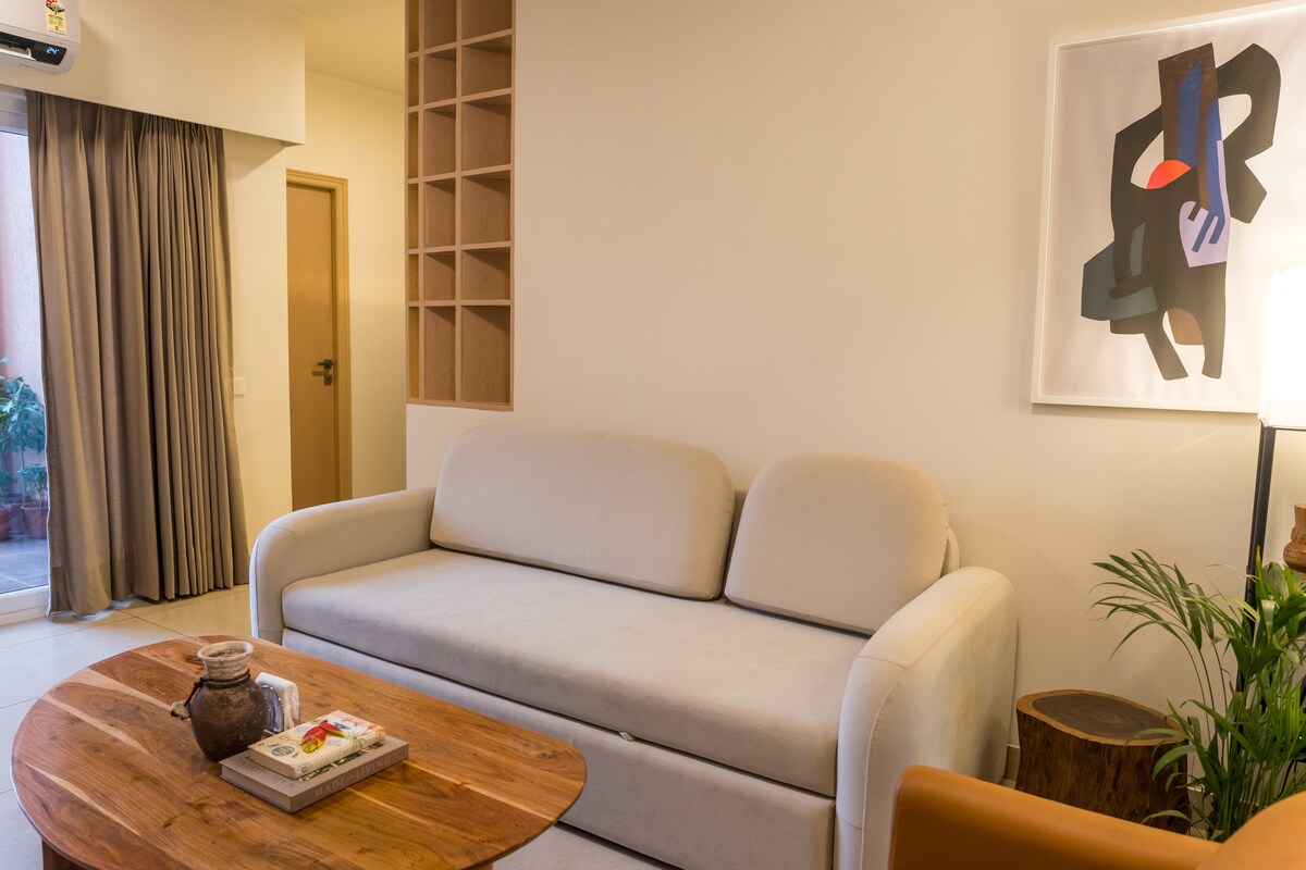 2BHK Poolblick | 5 Minuten vom Flughafen |Zennova Stays